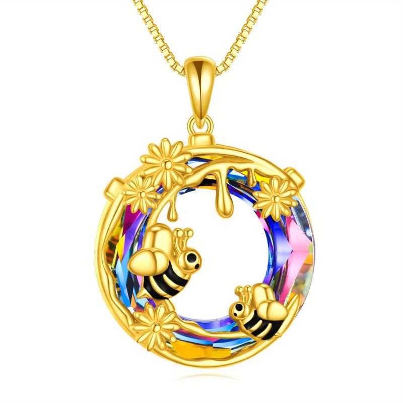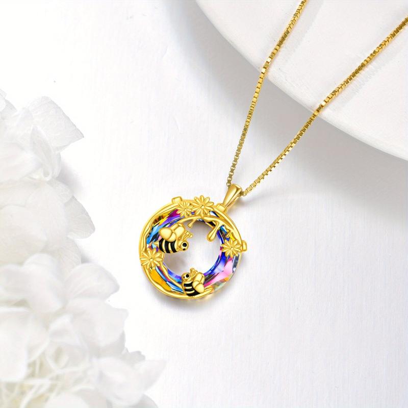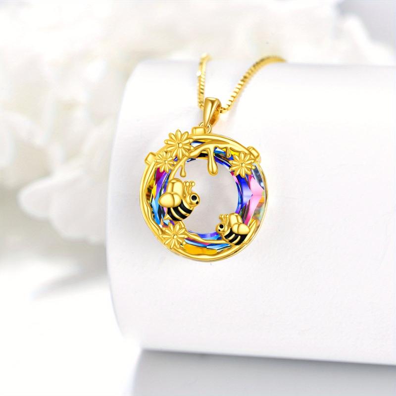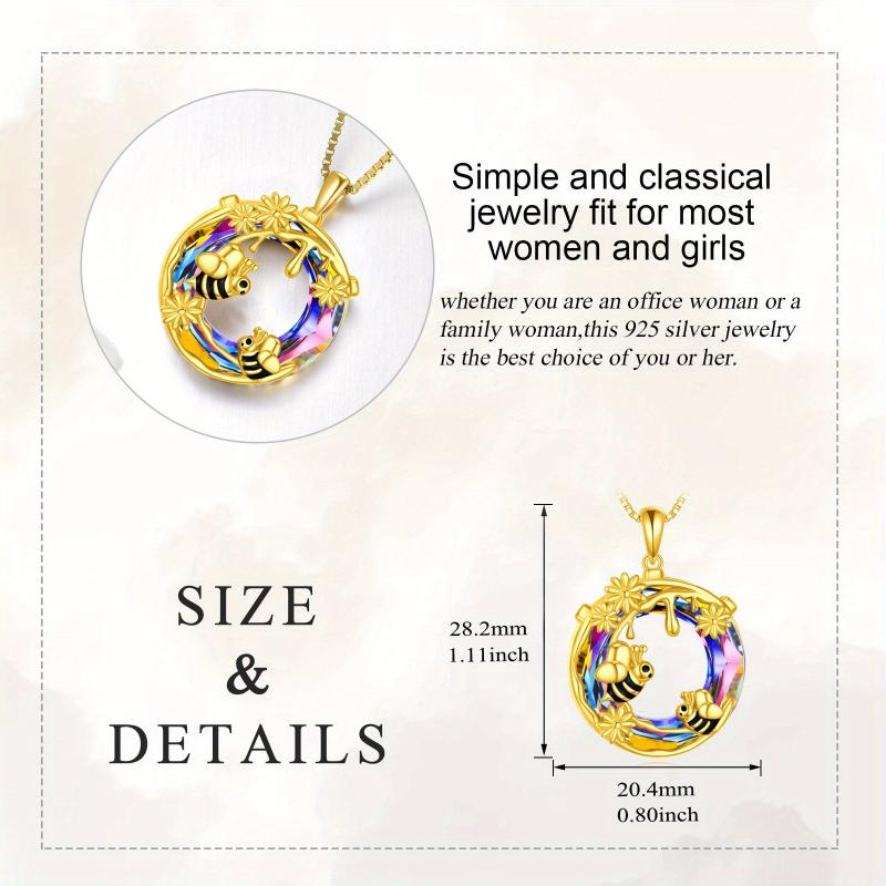 Add a touch of nature-inspired charm with this stunning bee necklace. Crafted from 925 sterling silver, it features a golden flower honey moon pendant adorned with artificial crystal for a touch of sparkle.