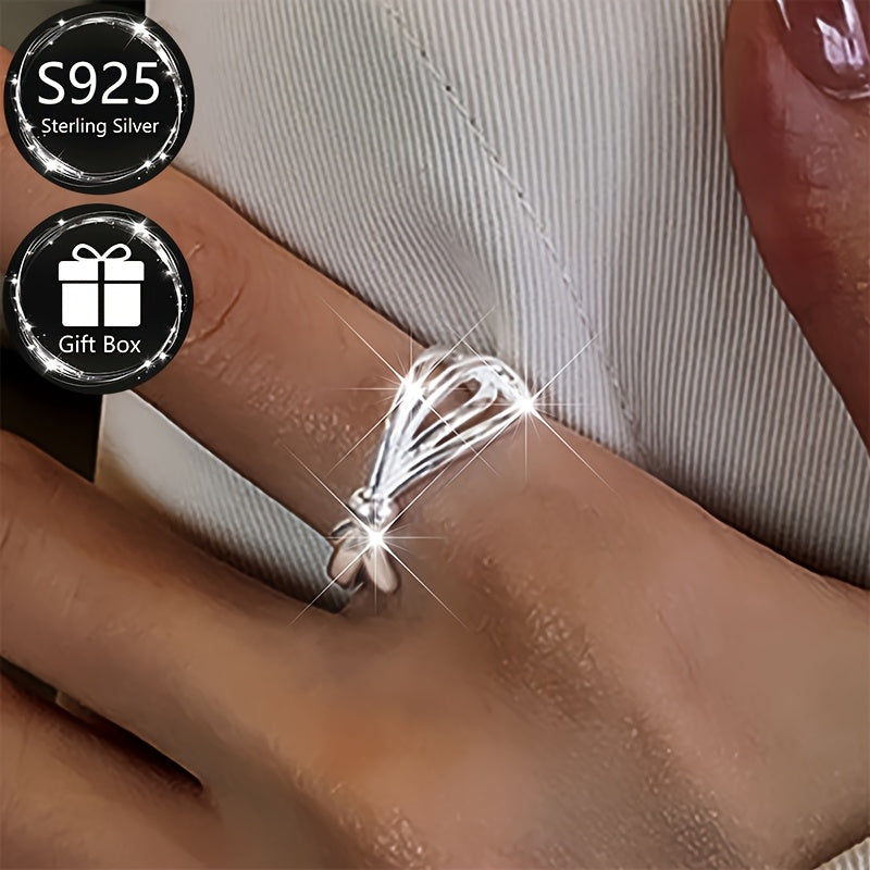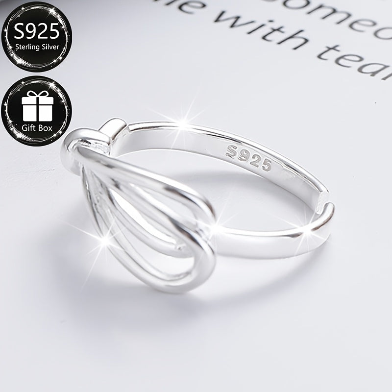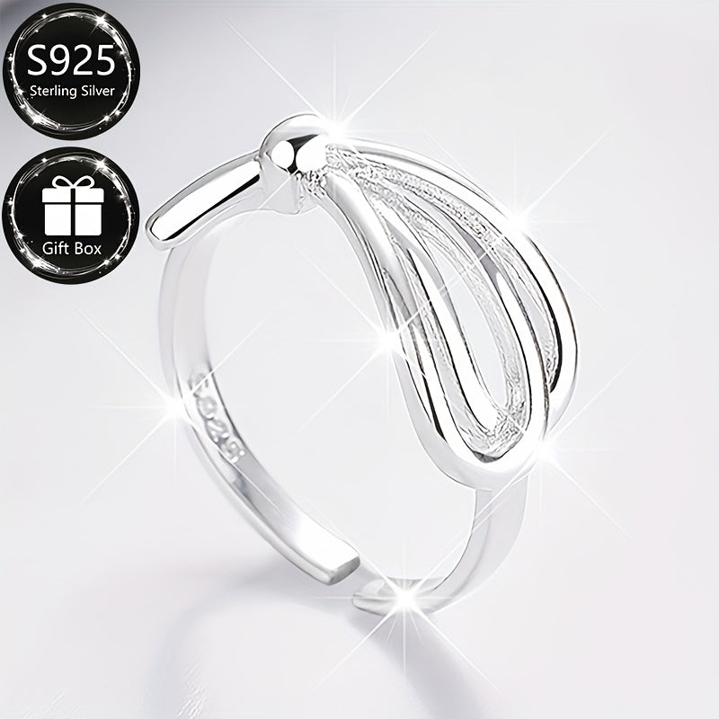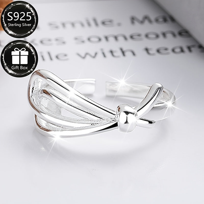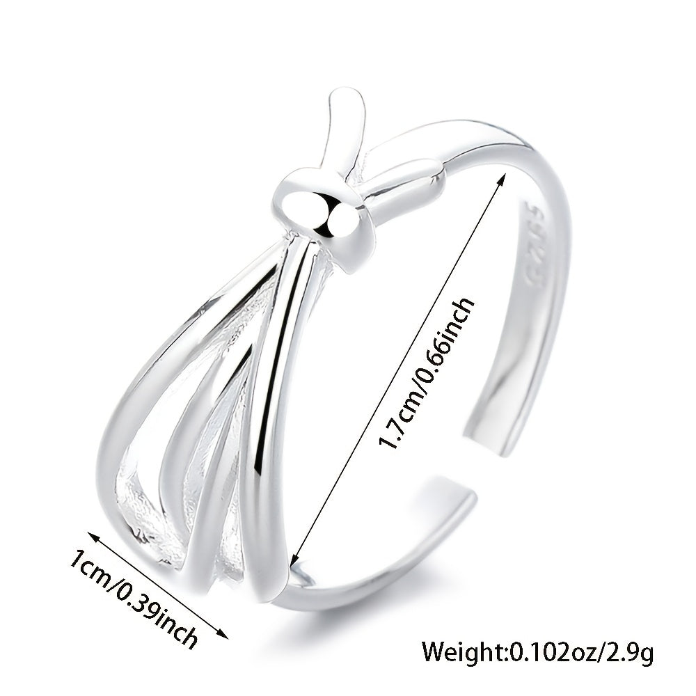 This adjustable open ring is crafted from 925 sterling silver with a bow design, perfect for everyday wear. It also makes a great gift for women.