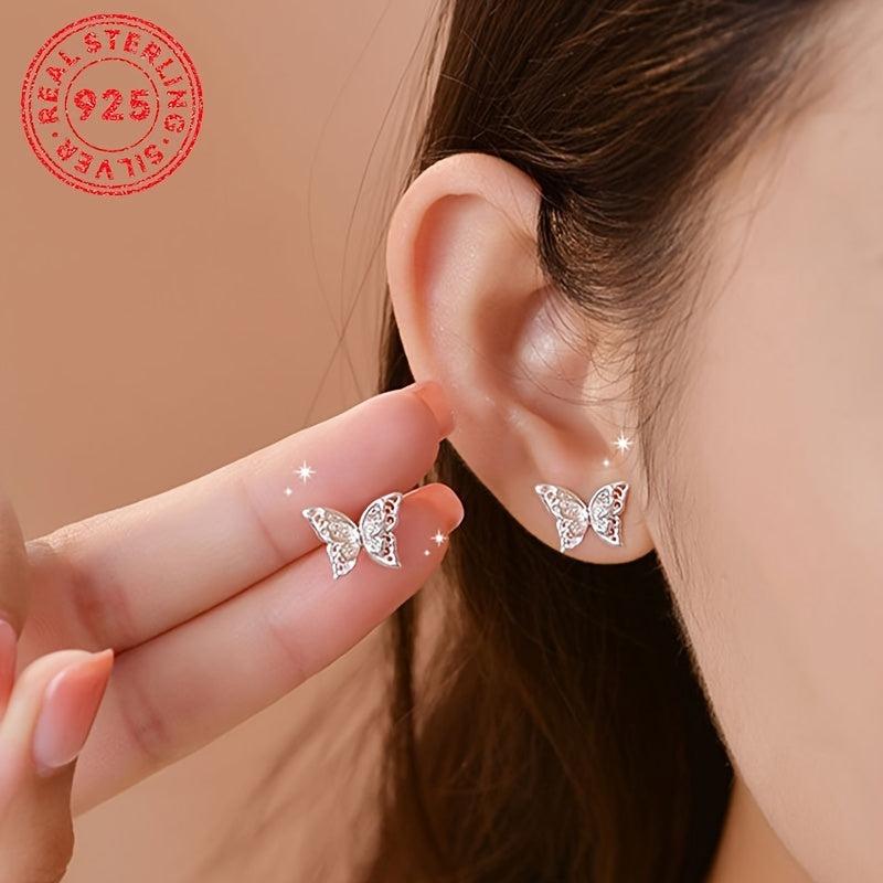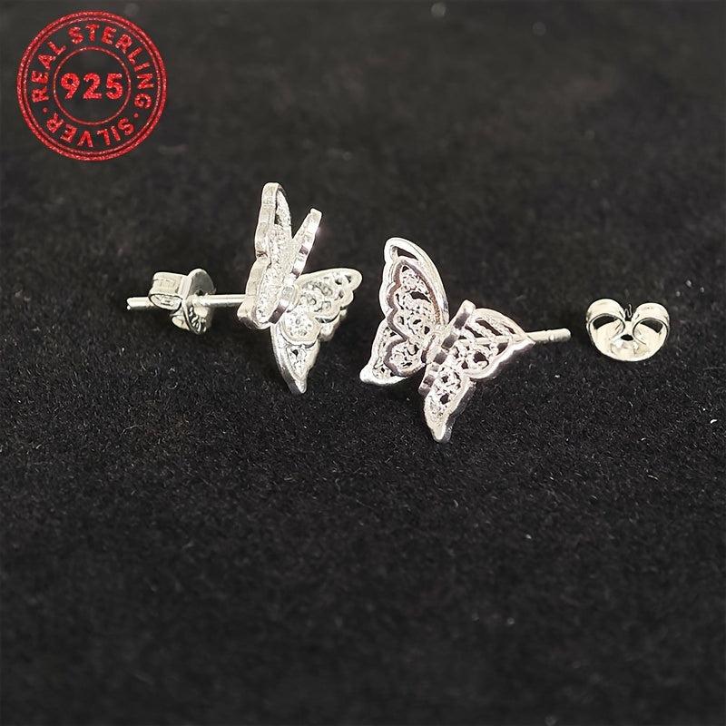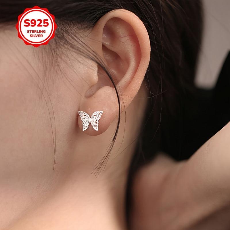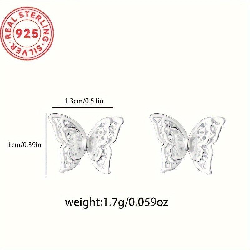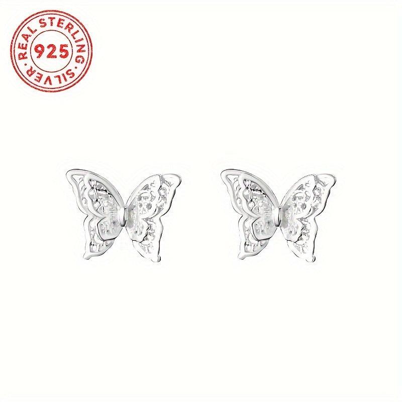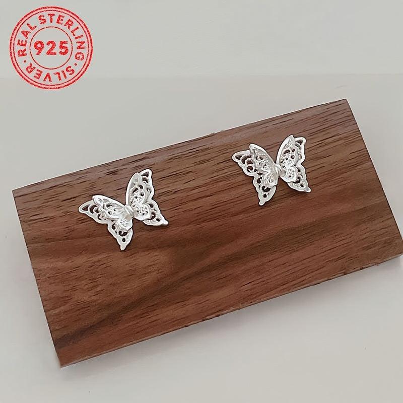 These beautiful butterfly stud earrings are crafted from 925 sterling silver, featuring a double layer hollow design. An elegant and timeless piece that makes a perfect gift for women.
