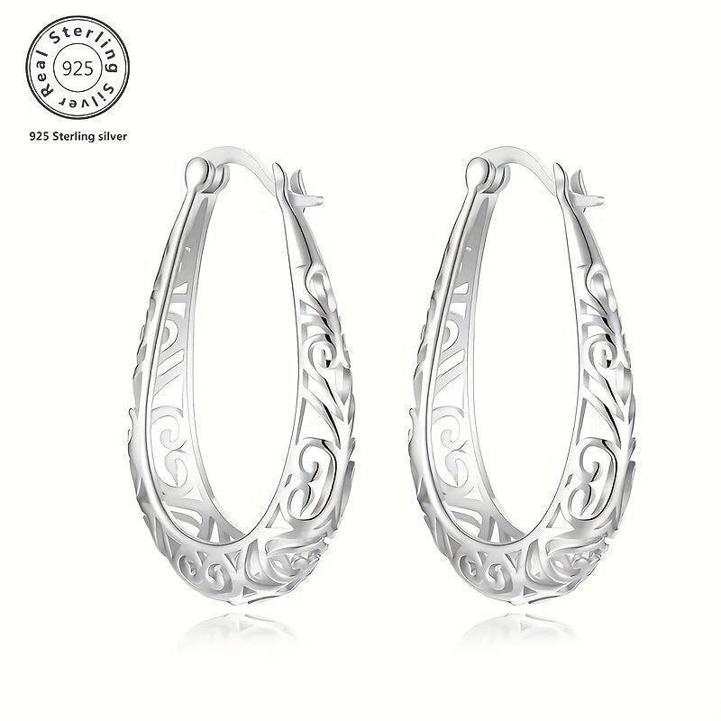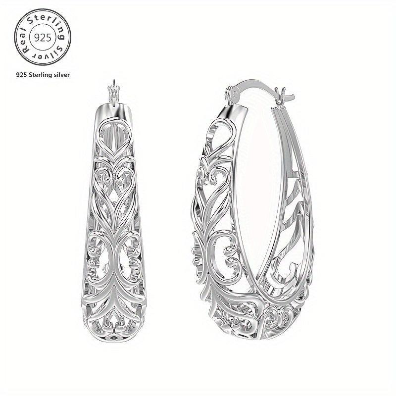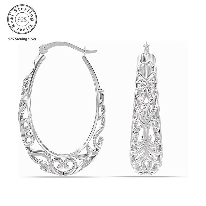 These vintage style earrings are made of 925 sterling silver, featuring delicate filigree cutout design. Lightweight and hypoallergenic, these earrings are perfect for any occasion.
