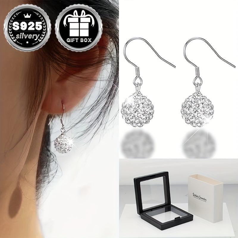 These classic drop earrings are made of 925 sterling silver with synthetic cubic zirconia. They are perfect for weddings and banquets.