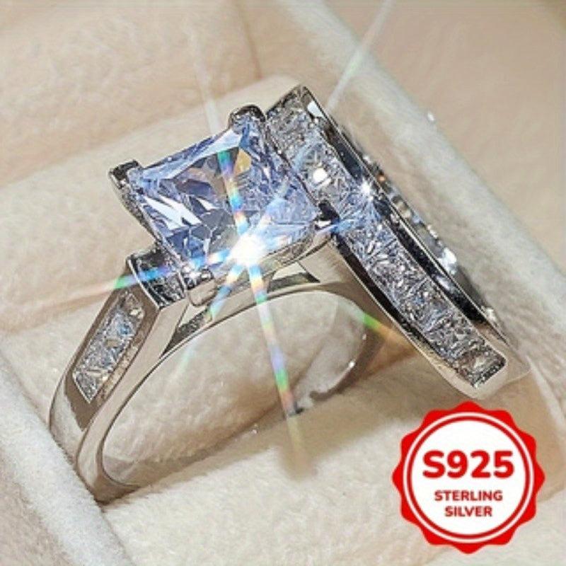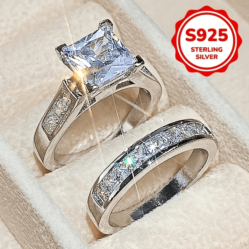 Elegant set of 2 rings featuring cubic zirconia stones in a square design. Perfect for wedding, engagement, or as a gift for a special occasion.