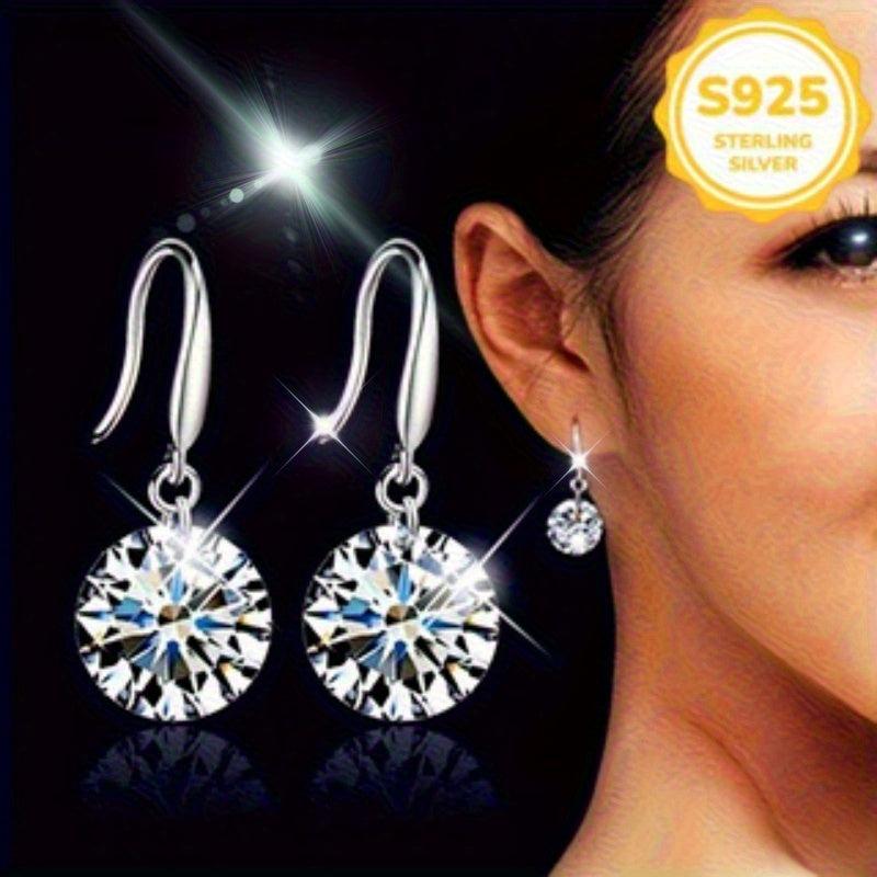 925 Sterling Silver Ear Hooks with Zirconia Studs Set