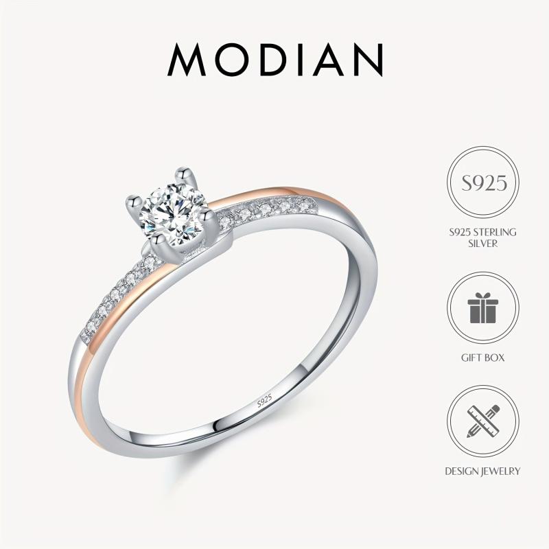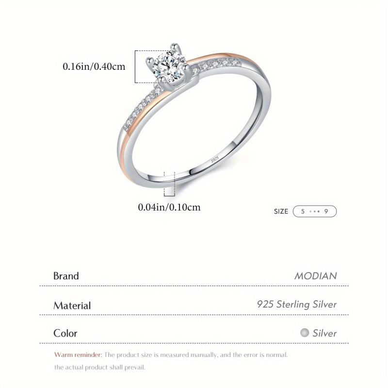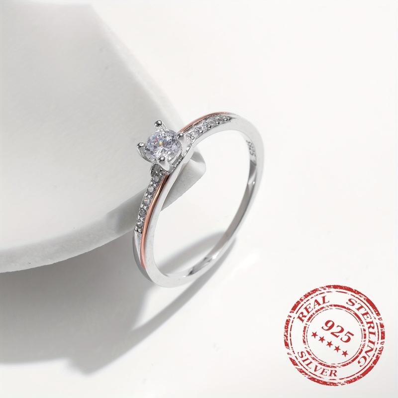 Stunning engagement ring crafted from 925 sterling silver featuring a dual-tone design with a single cubic zirconia stone in a four-prong setting. This classic style ring is perfect for weddings and special occasions.