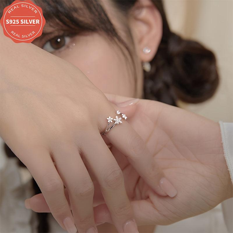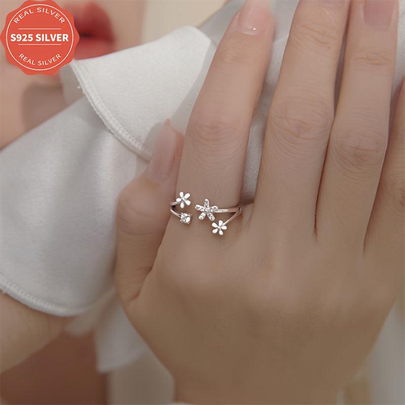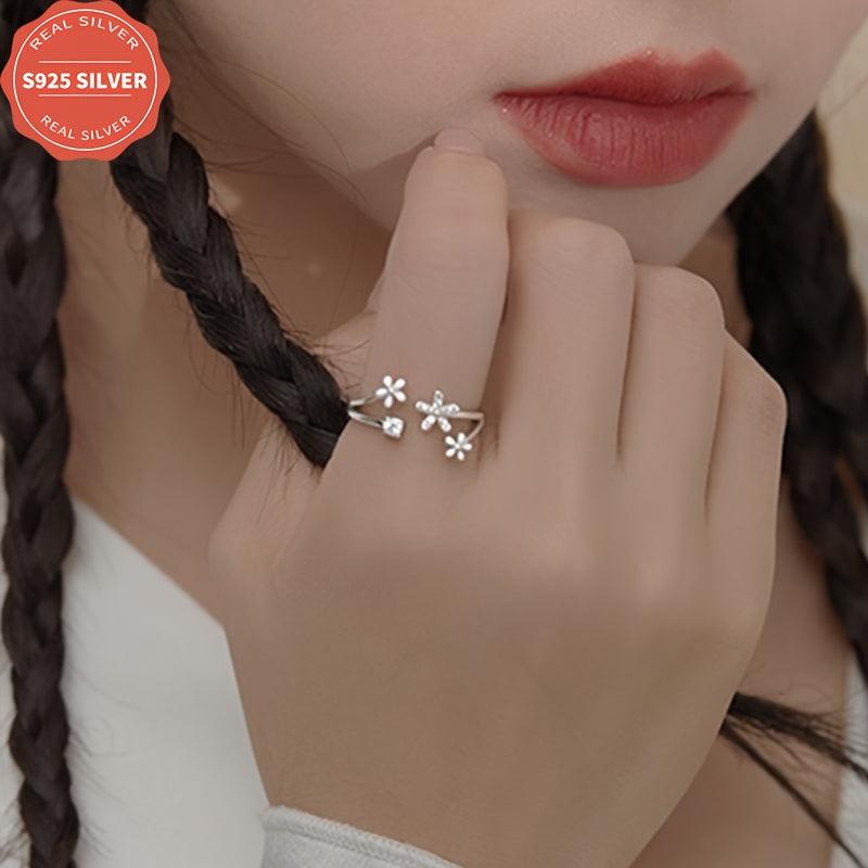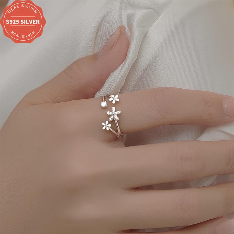 This 925 sterling silver floral ring is perfect for everyday wear and makes a great gift. It is hypoallergenic and offers a touch of elegance to any outfit.