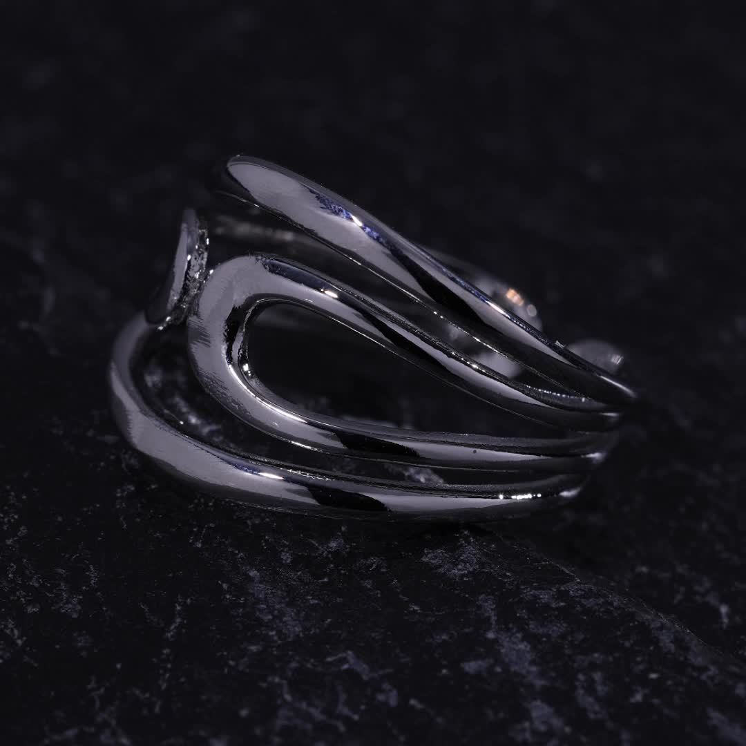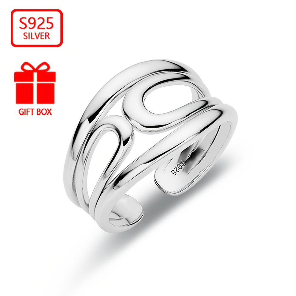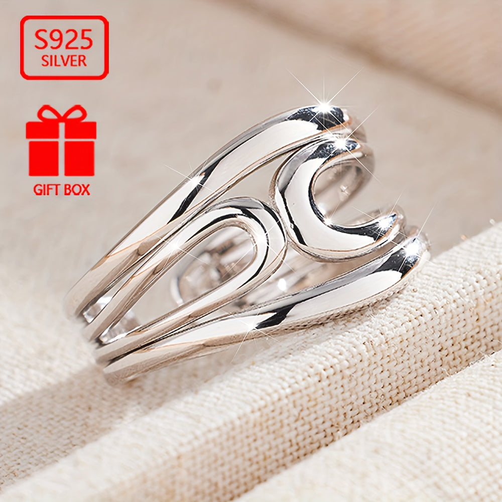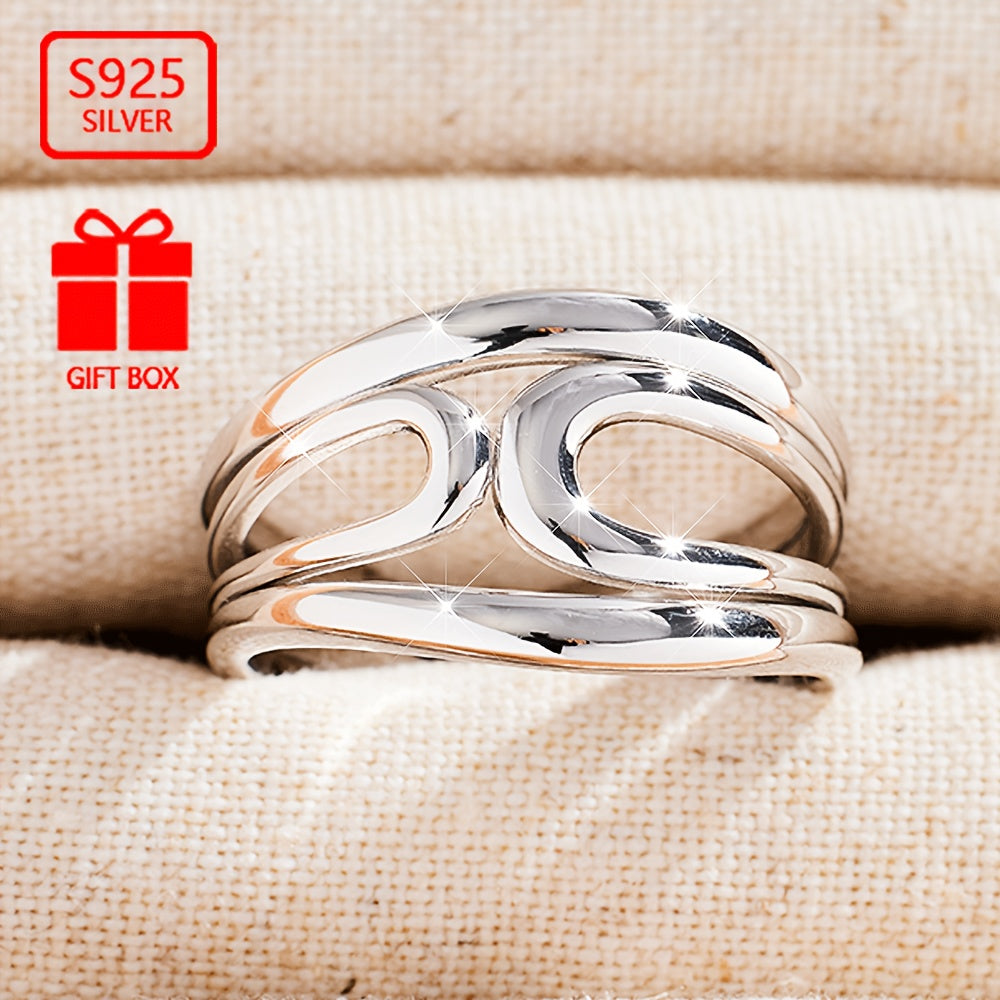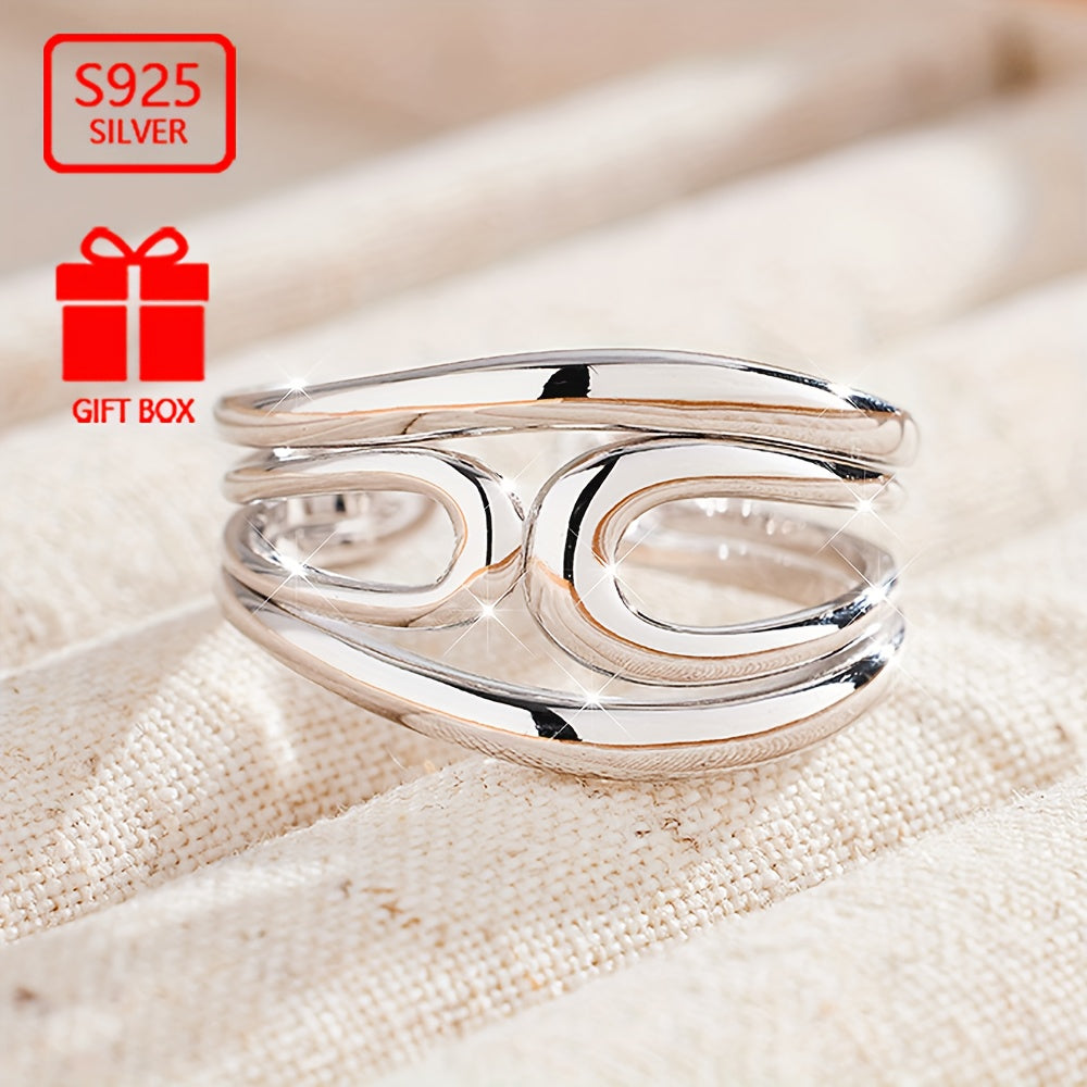This open ring features a unique geometric design that adds a touch of personality to your style. Made of 925 sterling silver, it is adjustable to fit any finger size.