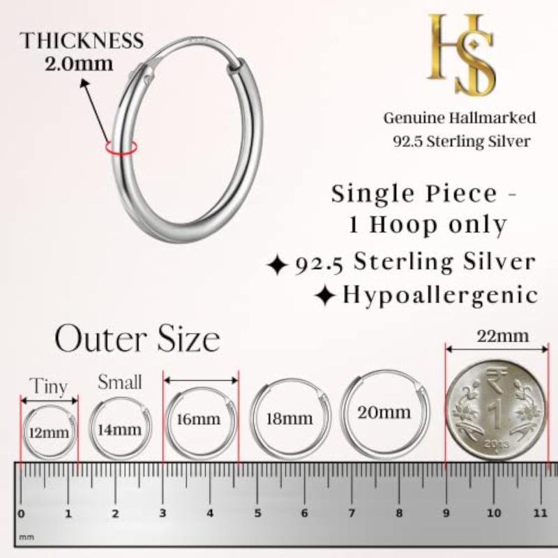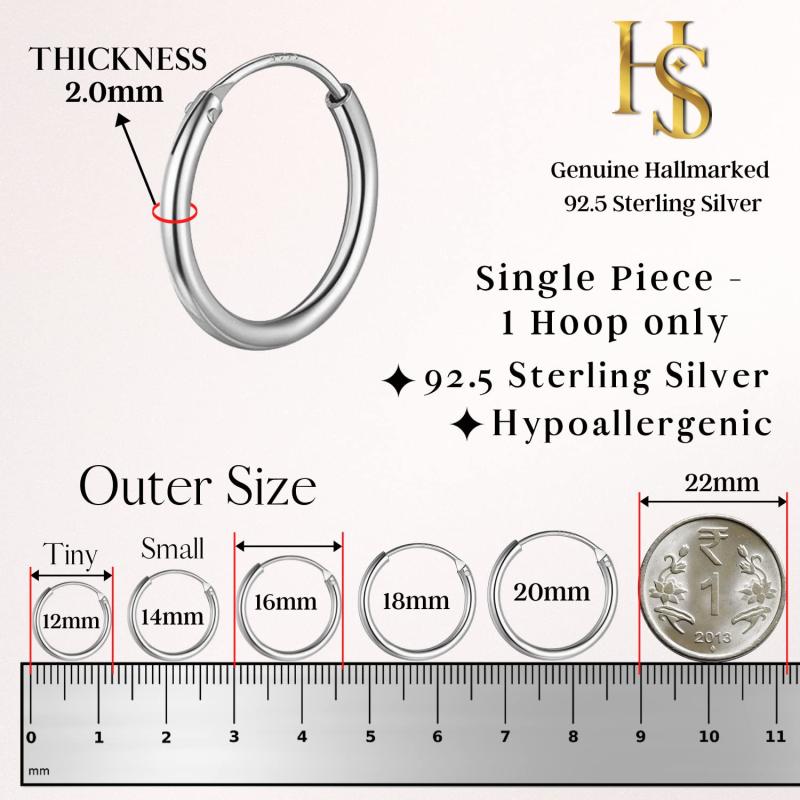 This stunning 925 sterling silver hoop earring features a single thickness of 2.0mm for a sleek look and is perfect for everyday wear.