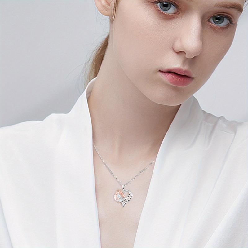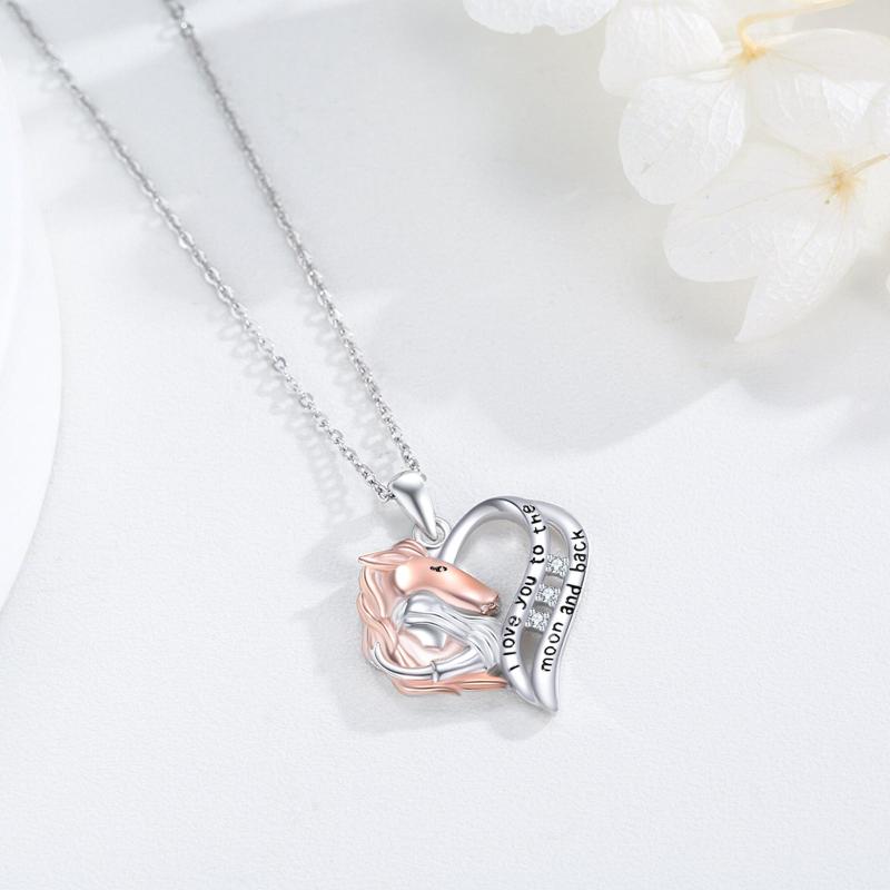This elegant horse necklace is made of 925 sterling silver with a sparkling CZ pendant. Perfect gift for horse lovers and equestrians.