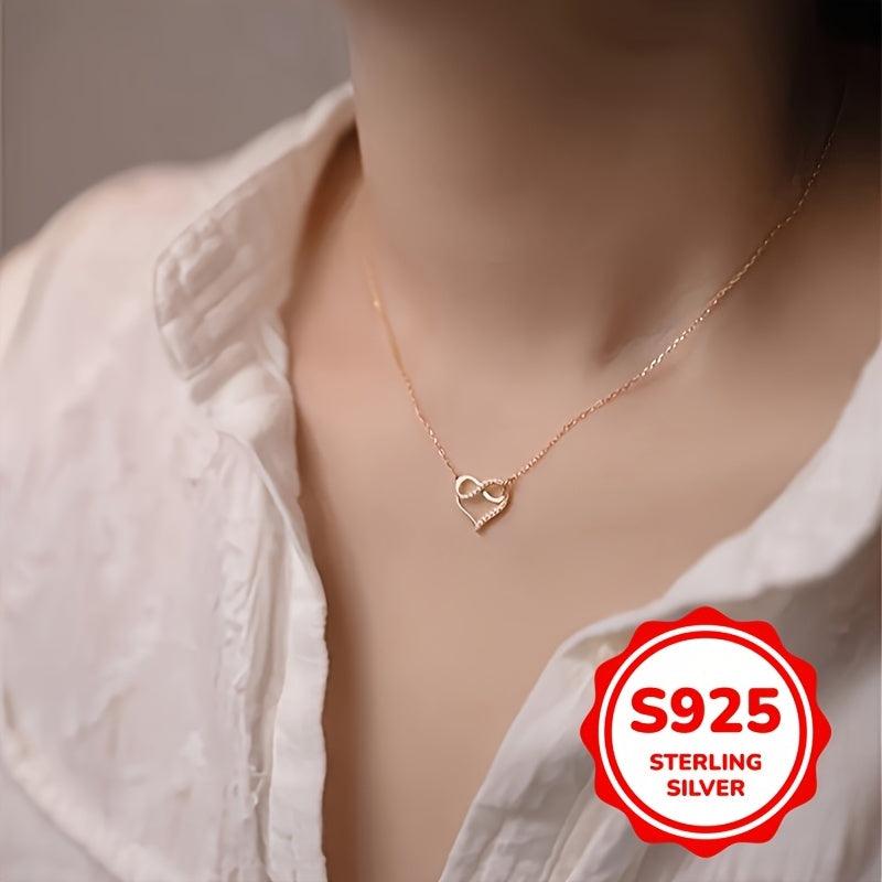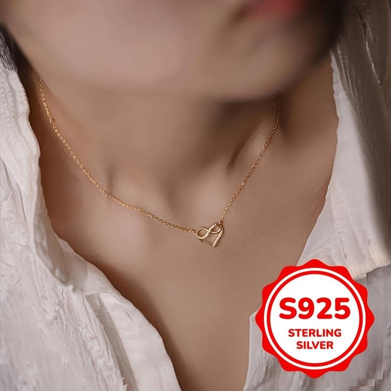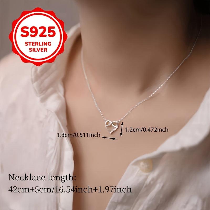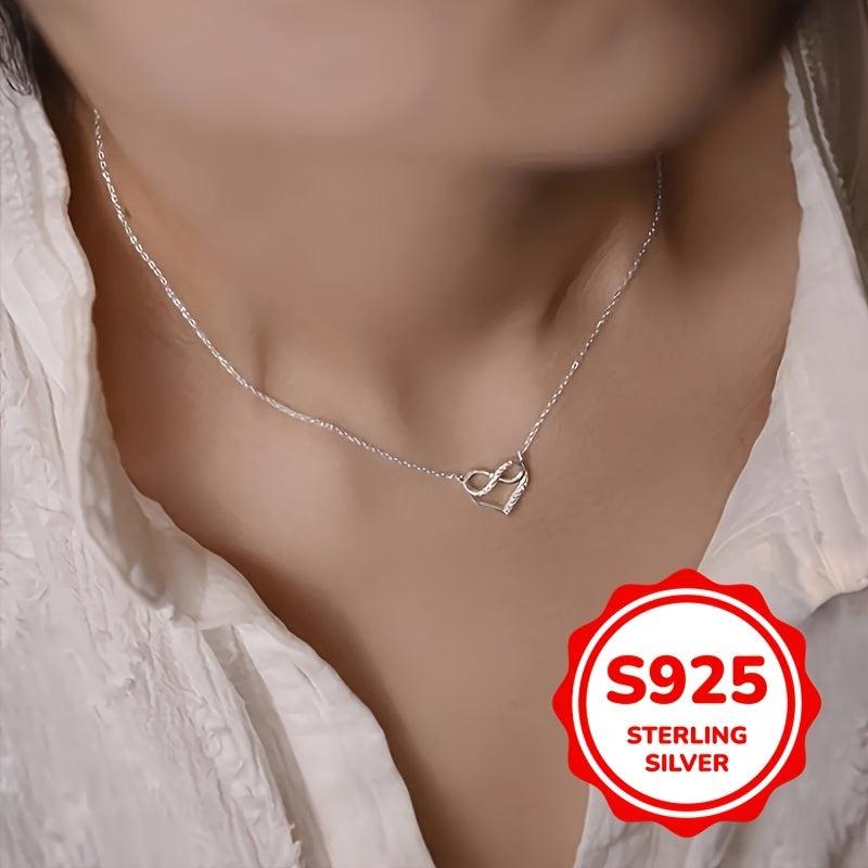 This elegant necklace is crafted in 925 sterling silver and features a beautiful infinity heart pendant with synthetic cubic zirconia. Perfect for weddings, engagements, and Valentine's Day.