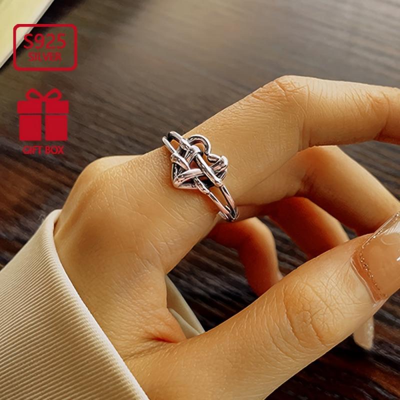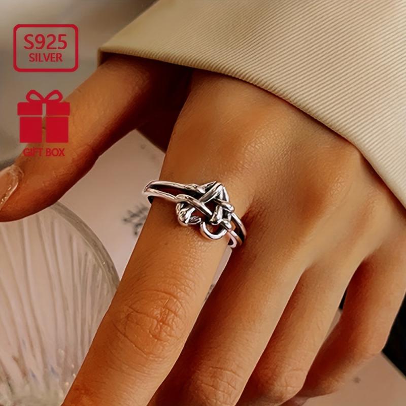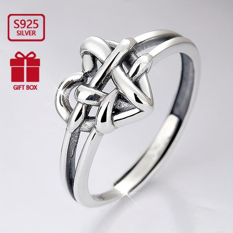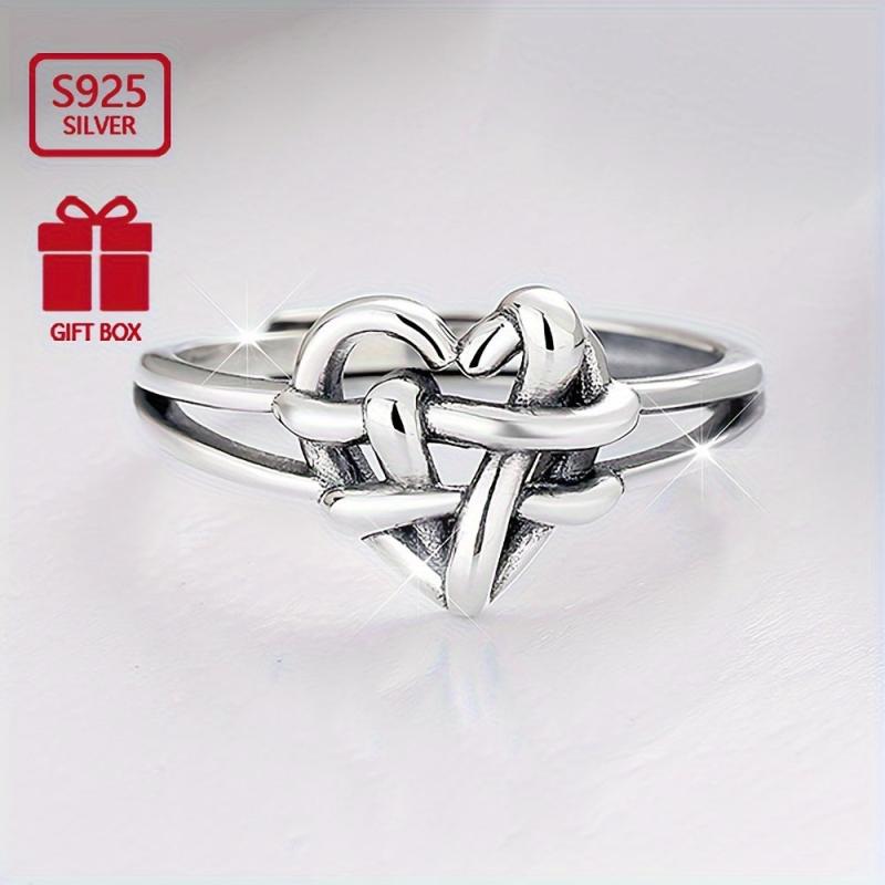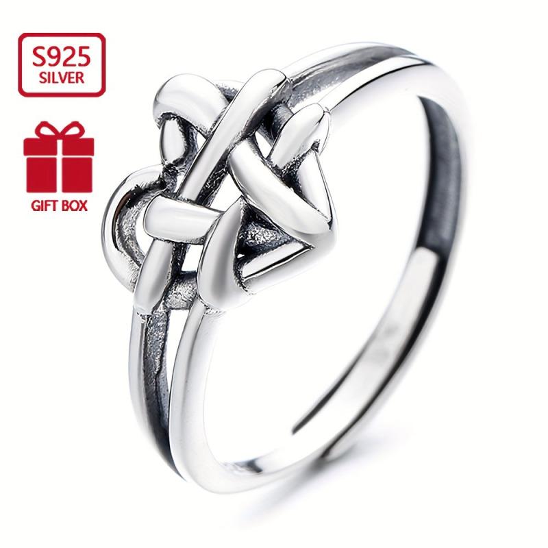 This 925 sterling silver ring features a charming irregular heart design with braided line details, perfect for gifting or wearing to a banquet. Hypoallergenic and suitable for women.