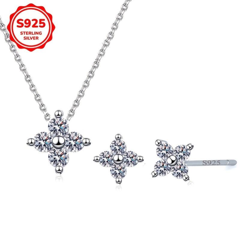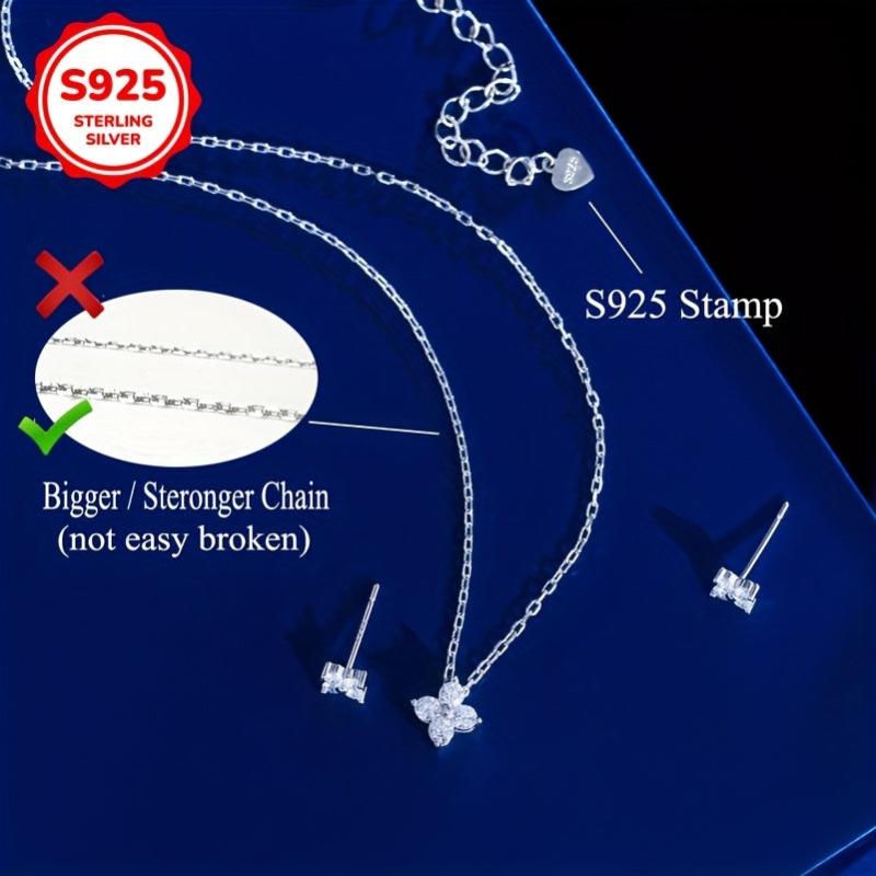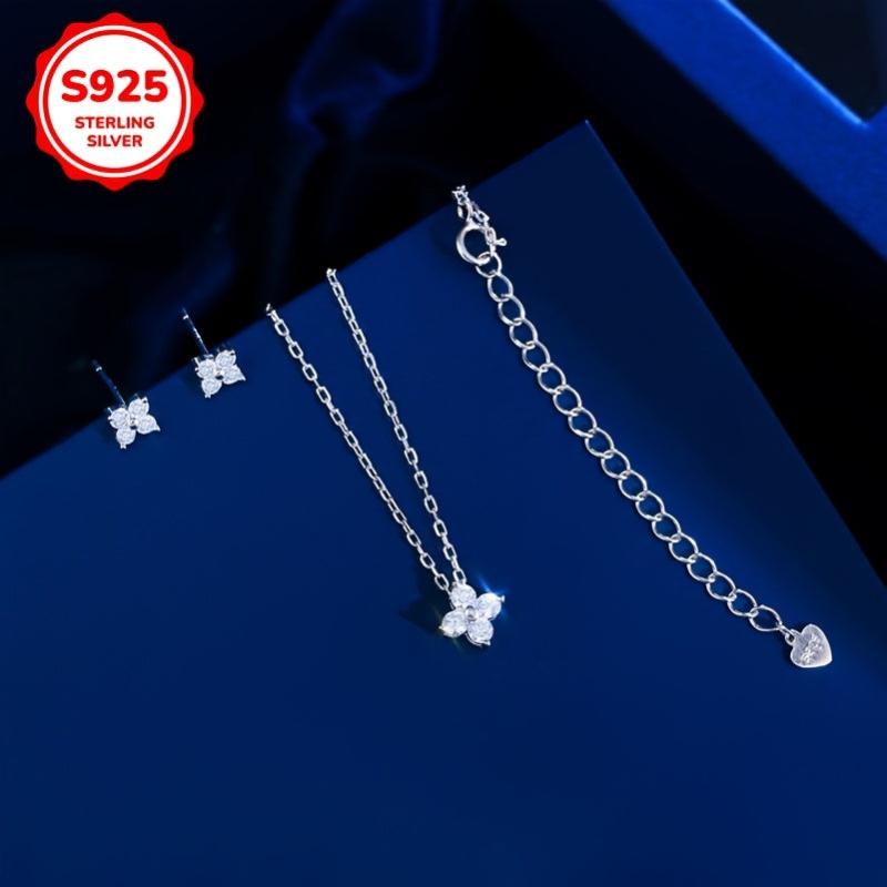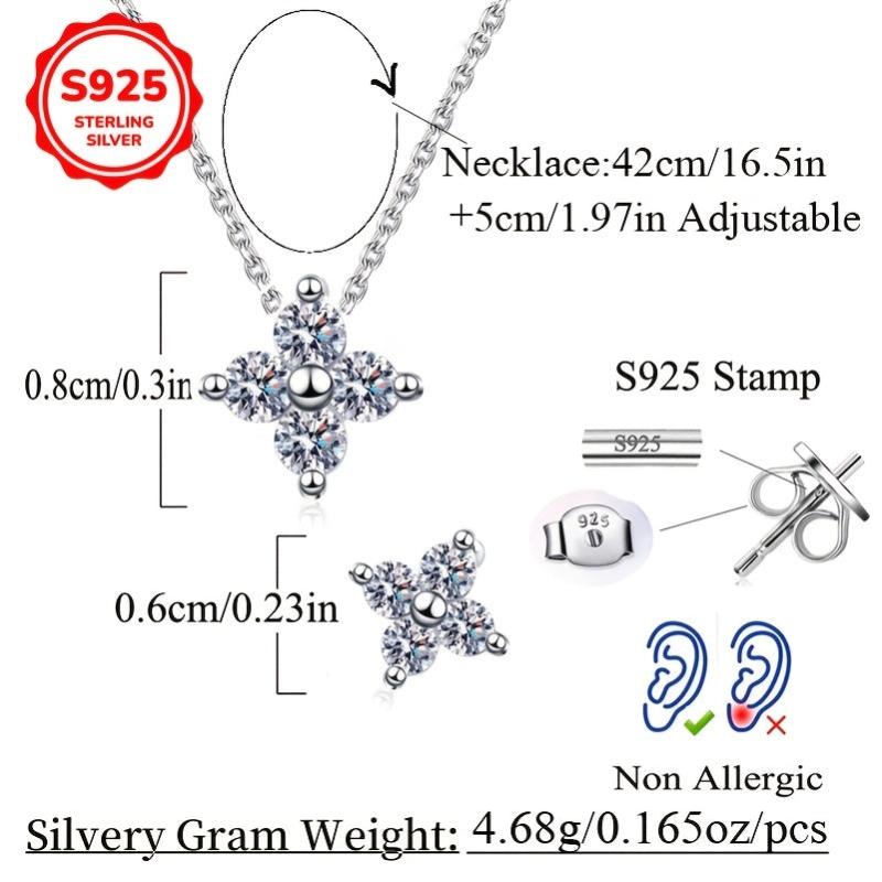 This jewelry set includes a pair of ear studs and a necklace made of 925 sterling silver. The sparkling synthetic zirconia inlaid lucky four leaf clover design adds a touch of elegance to your everyday outfits.