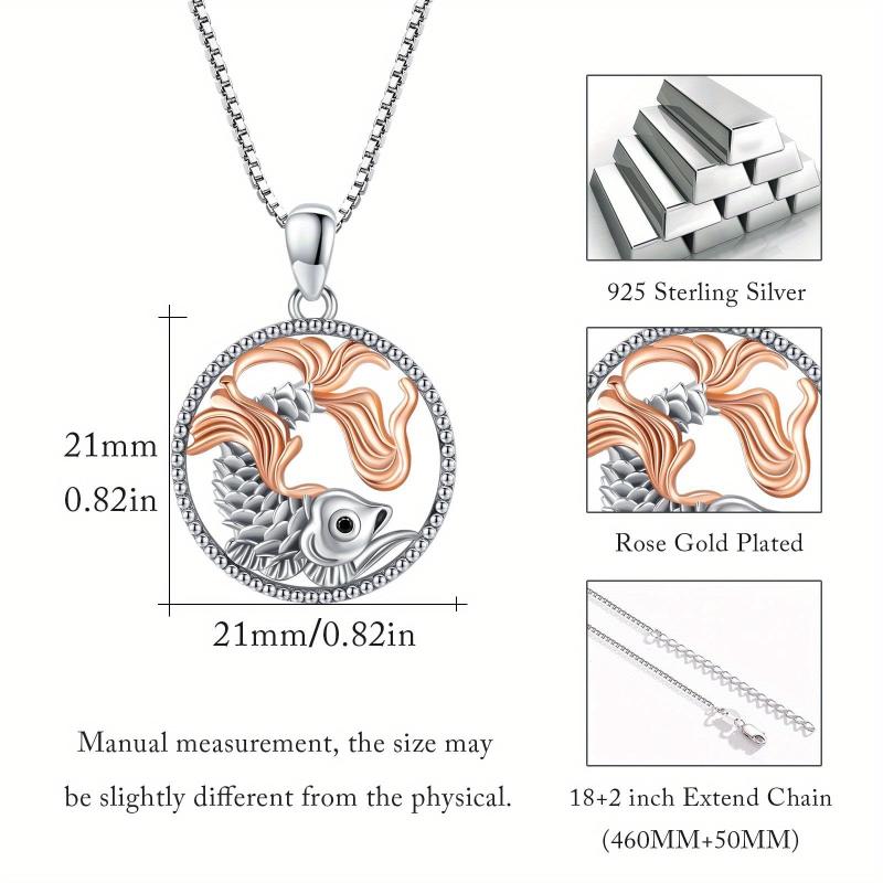 925 Sterling Silver Koi Necklace for Women, Lucky Jewellery Gift