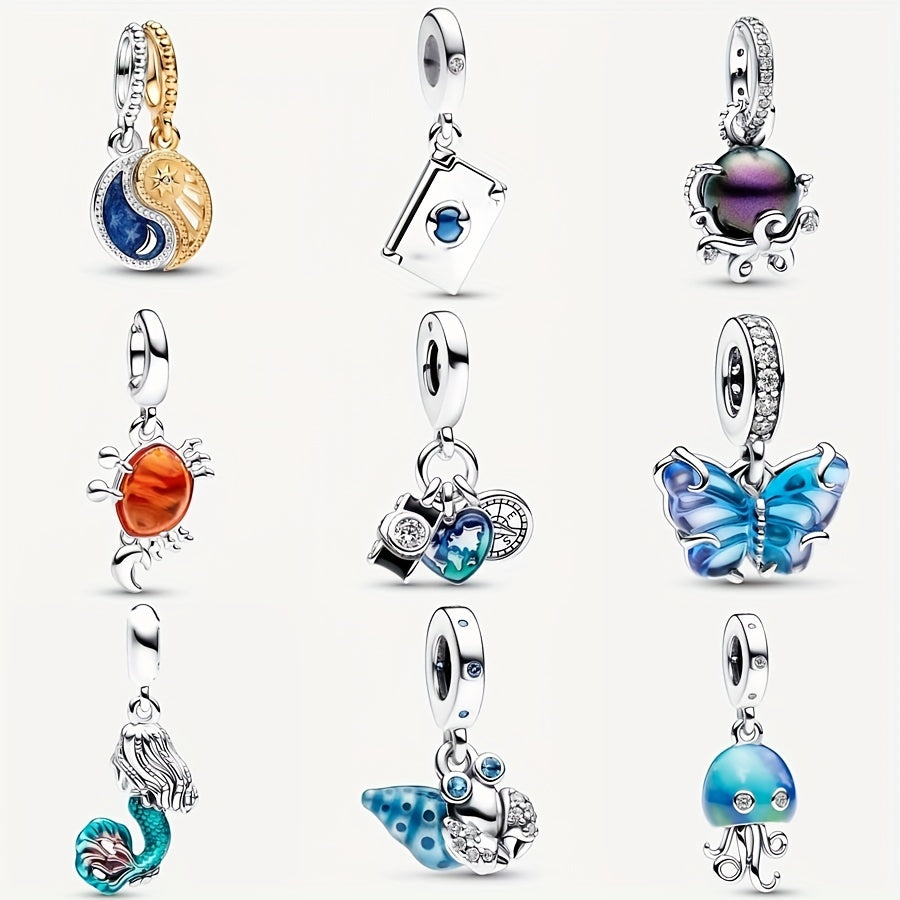 Add charm to your bracelet with this 925 sterling silver bead featuring a mermaid, butterfly, crab, and octopus design. Perfect for DIY jewelry projects.