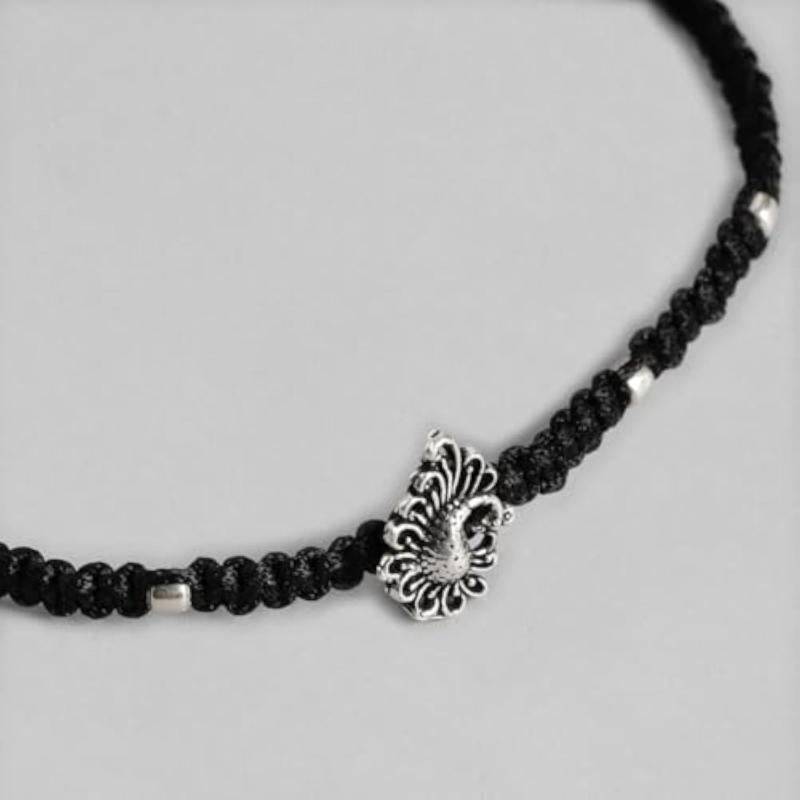 Elegant 925 sterling silver peacock design anklet with rhodium plating for a stylish look and hypoallergenic wear.