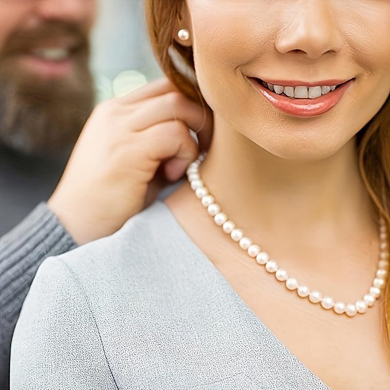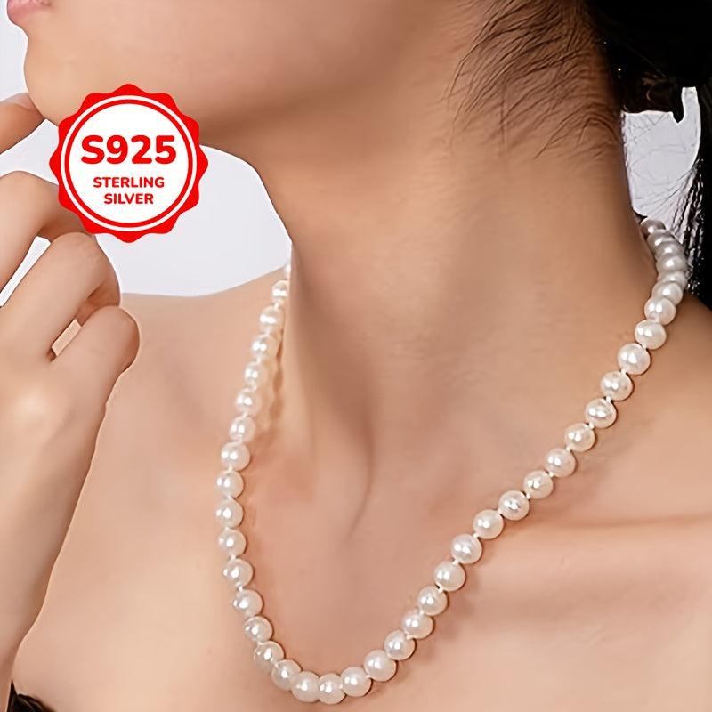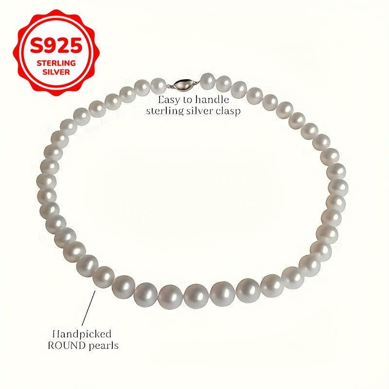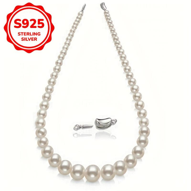 This elegant pearl necklace is crafted with 925 sterling silver overlay, making it ideal for daily wear and gift giving. It is compatible with all seasons and features a low allergy bead material for added comfort.