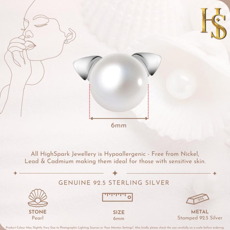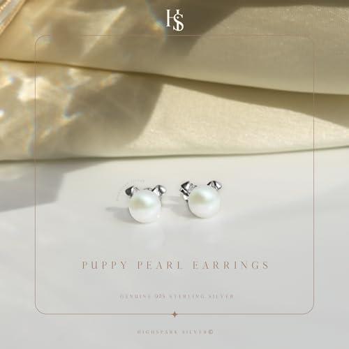 925 Sterling Silver Pearl Puppy Stud Earrings - Lovely & Brilliant Lustre Pearls