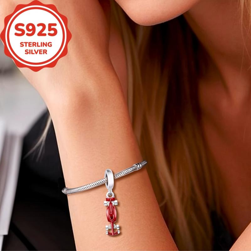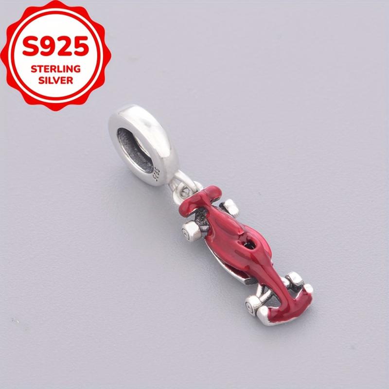 Add some racing style to your jewelry with this 925 sterling silver racing car pendant featuring a vibrant red bead. Ideal for daily wear or as a birthday gift. Perfect for Christmas, Mother's Day, or any special occasion.