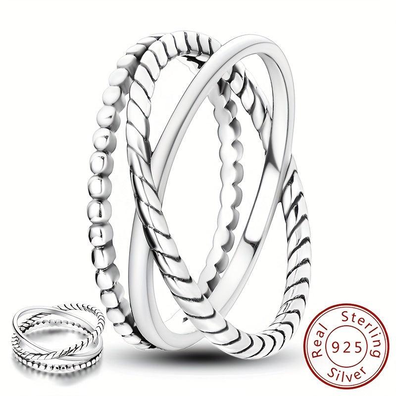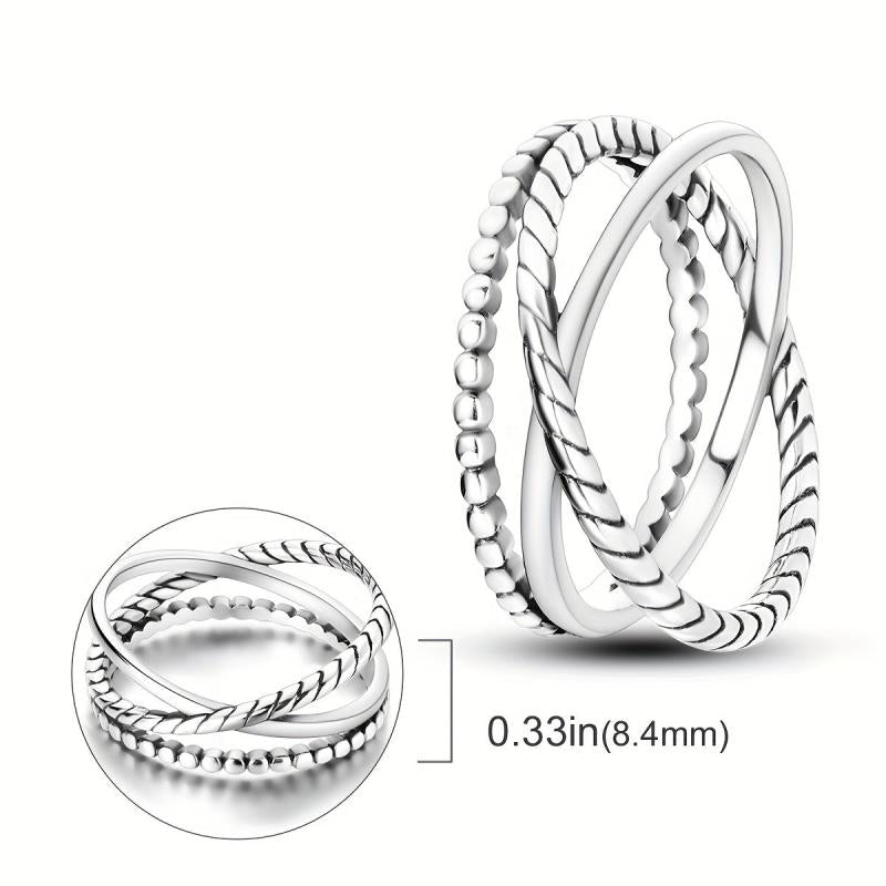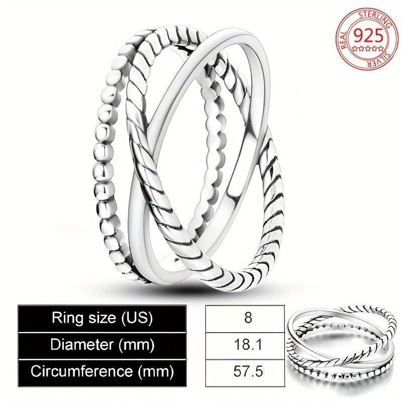 This stylish 925 sterling silver ring features a wide band with a unique crossed twist design. Perfect for women, this ring is ideal for engagement parties and makes a great gift.