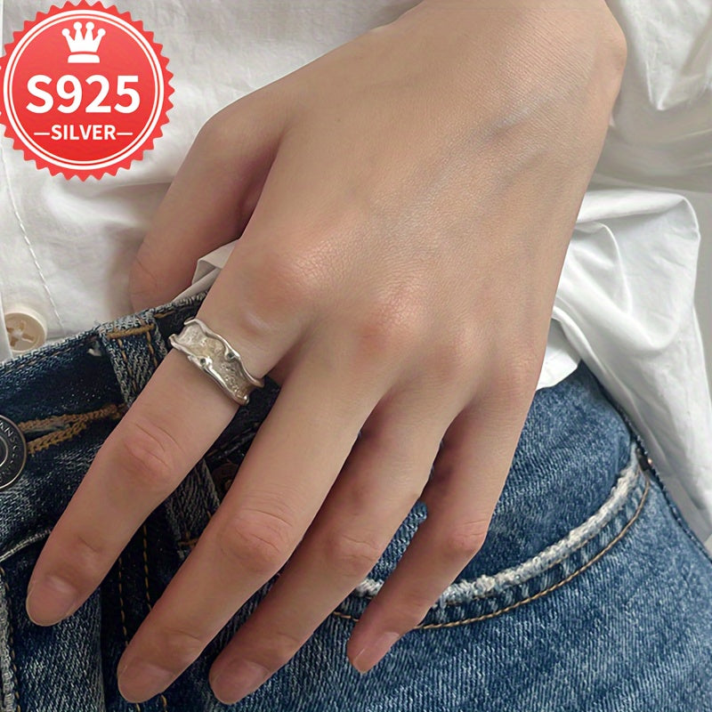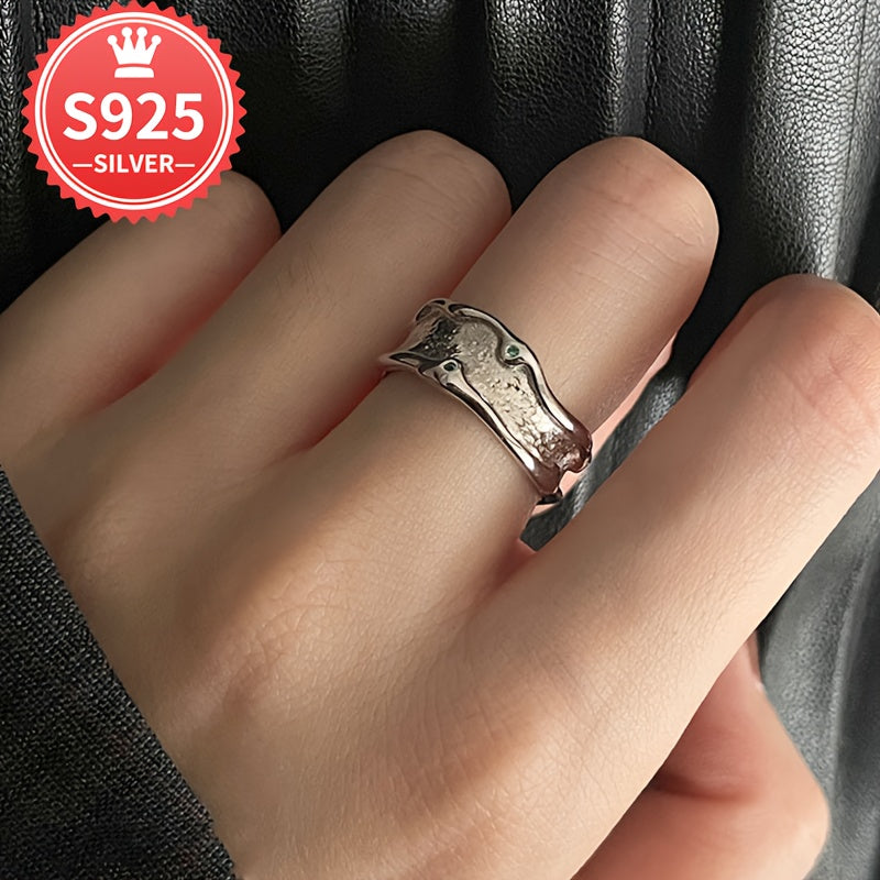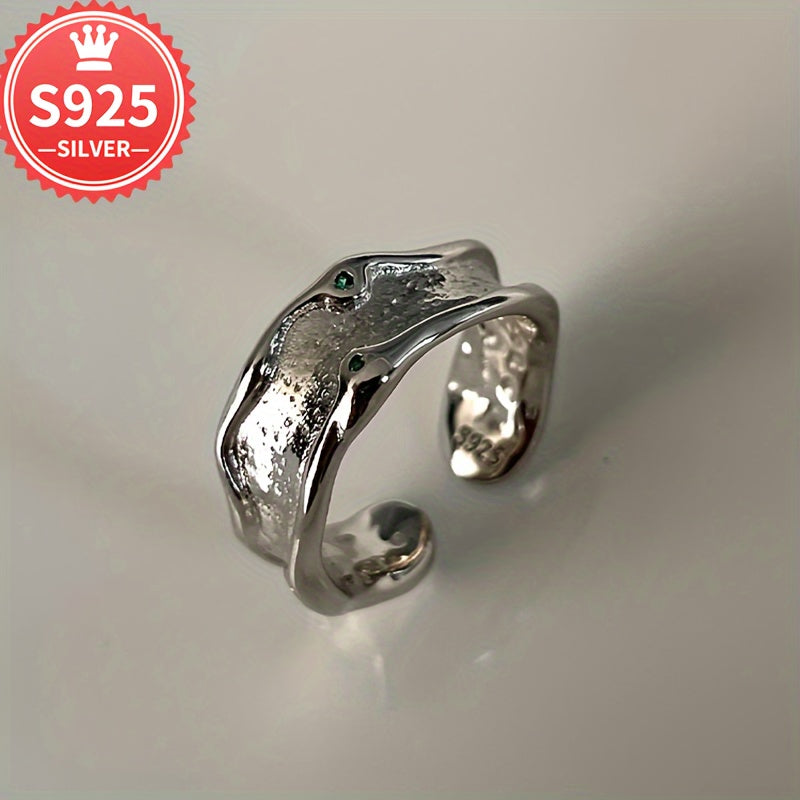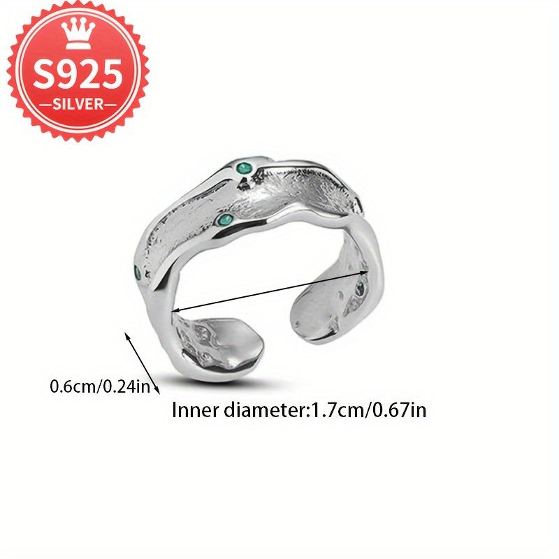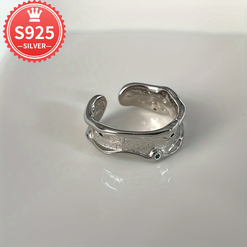 This stylish 925 sterling silver ring features synthetic zirconia inlay on an adjustable open band. It is hypoallergenic, textured, and anti-oxidation, weighing 3.9g. Perfect for daily wear.