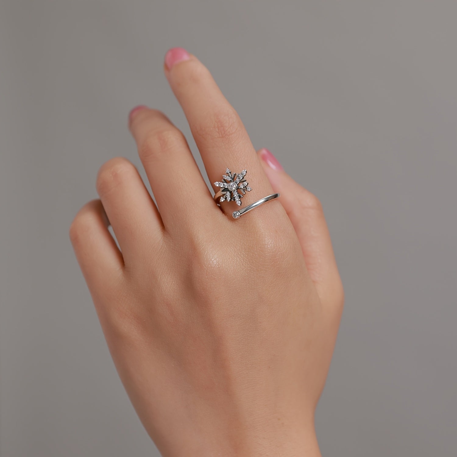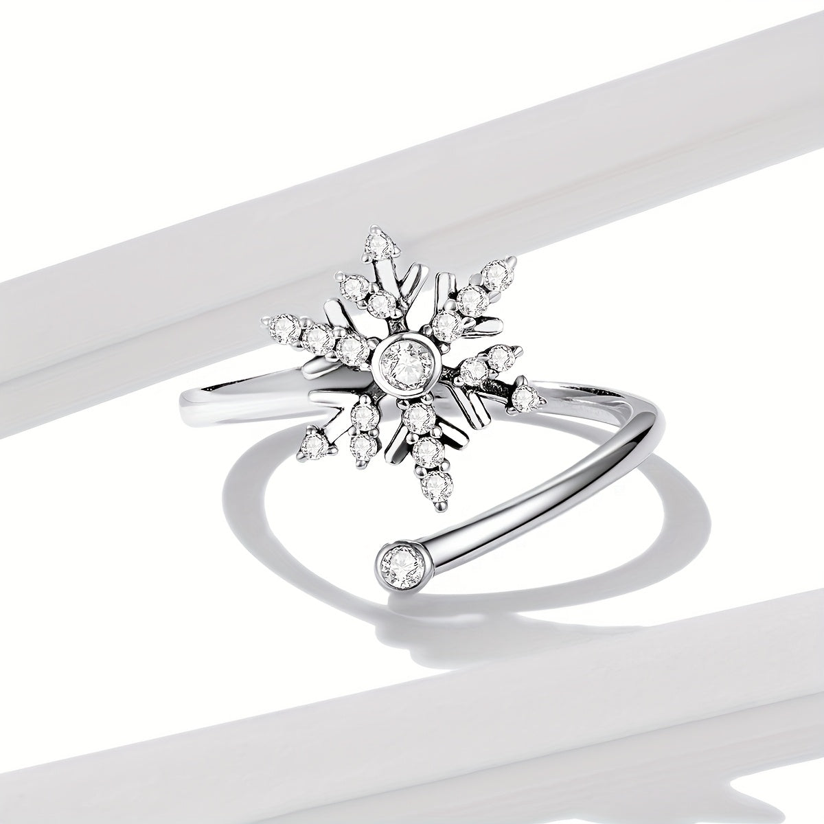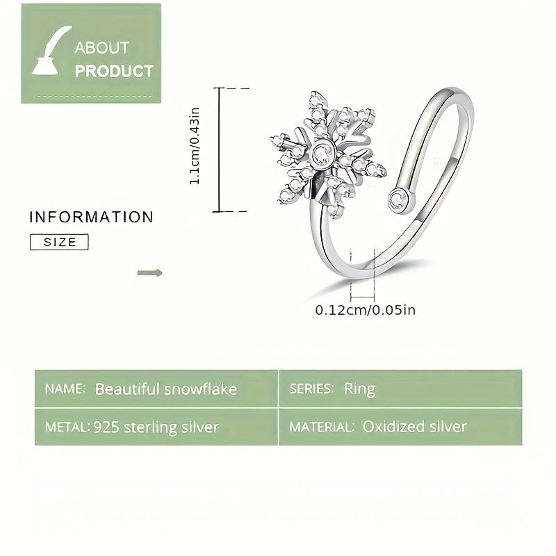 Add a touch of winter magic with this stunning 925 sterling silver snowflake ring adorned with synthetic zirconia. Perfect for daily wear or vacation trips, this ring is a great Valentine's gift idea. Weighing only 1.5g, it is lightweight and comfortable to wear.