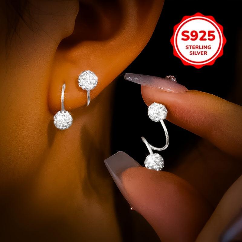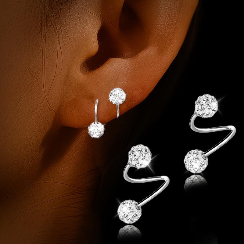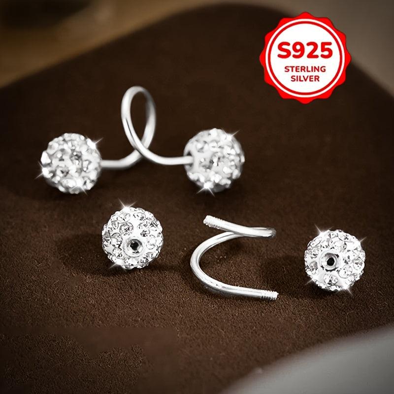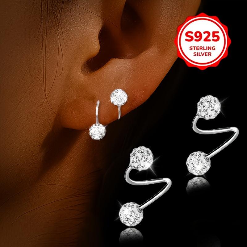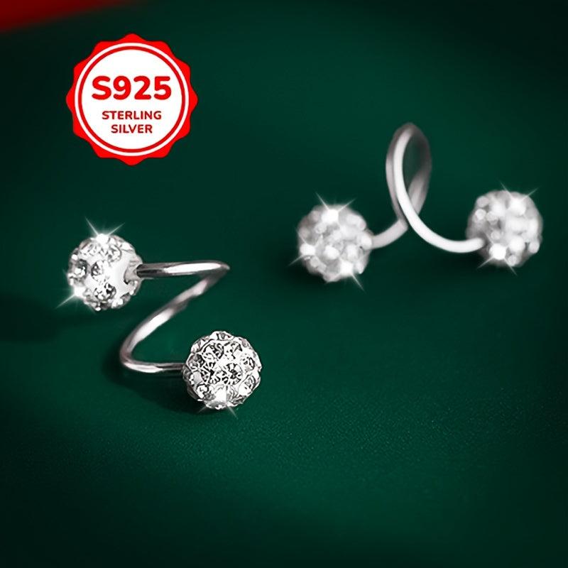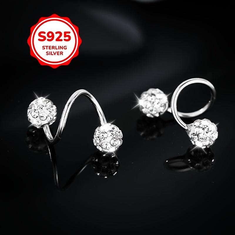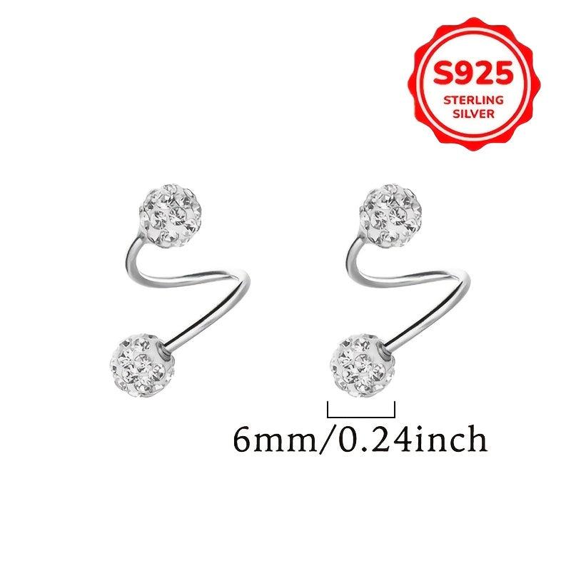 These elegant earrings feature a double-headed spiral design with Synthetic Zirconia ball screw backs. They are made of 925 sterling silver and are perfect for ear piercing.