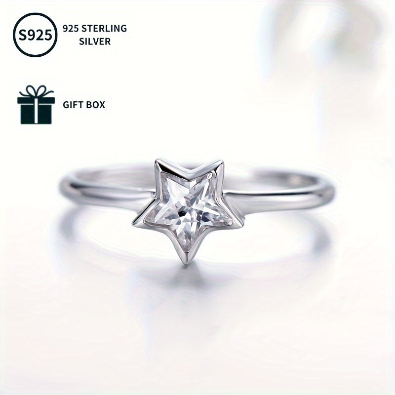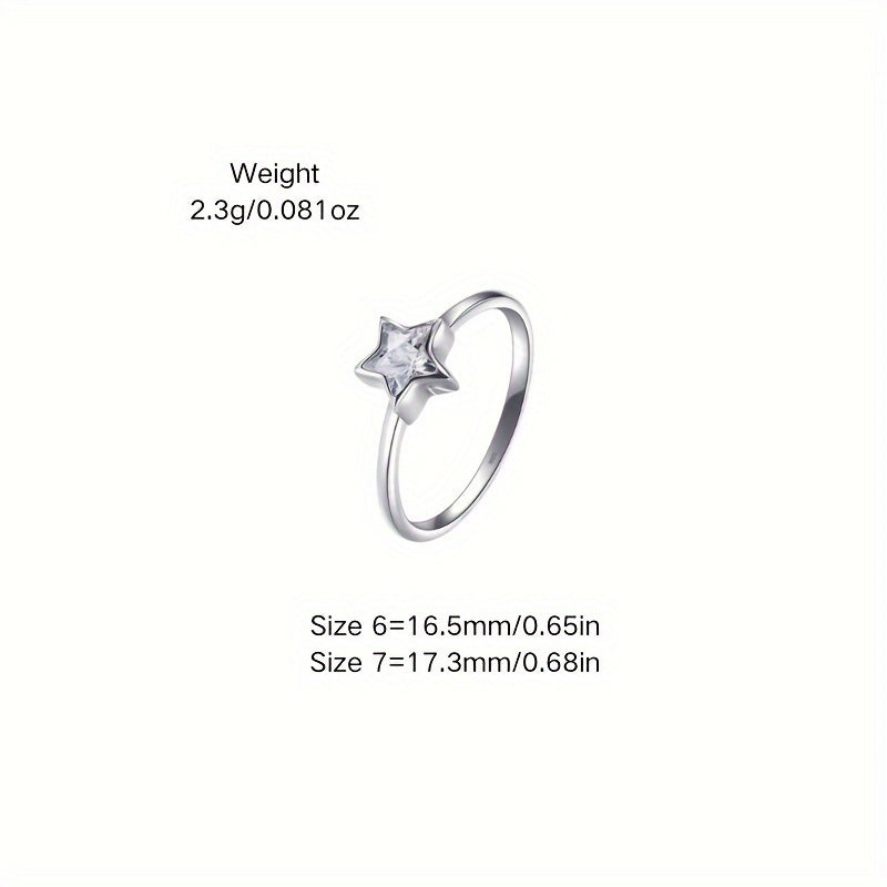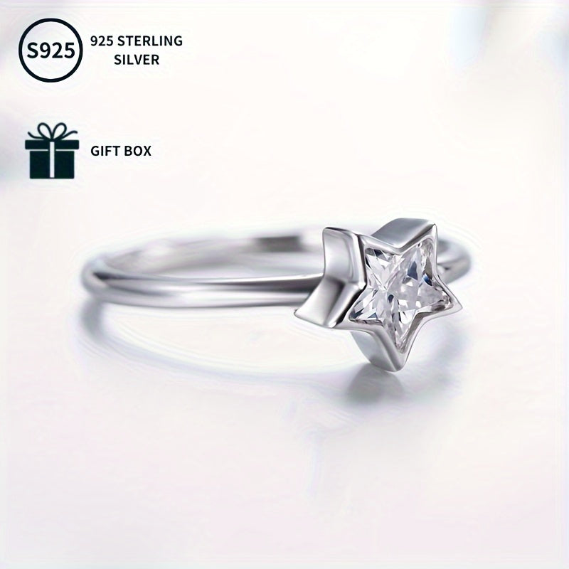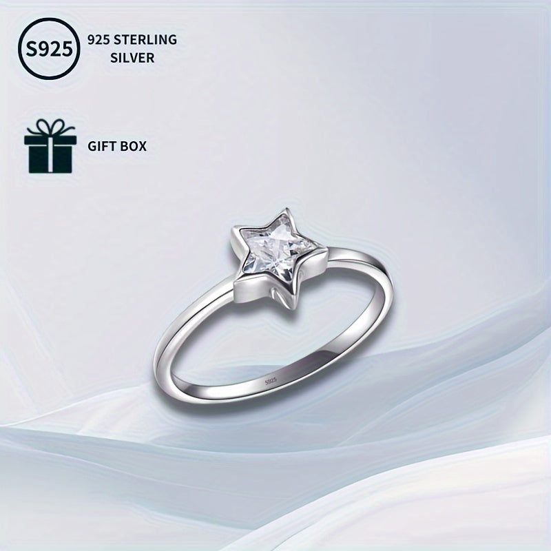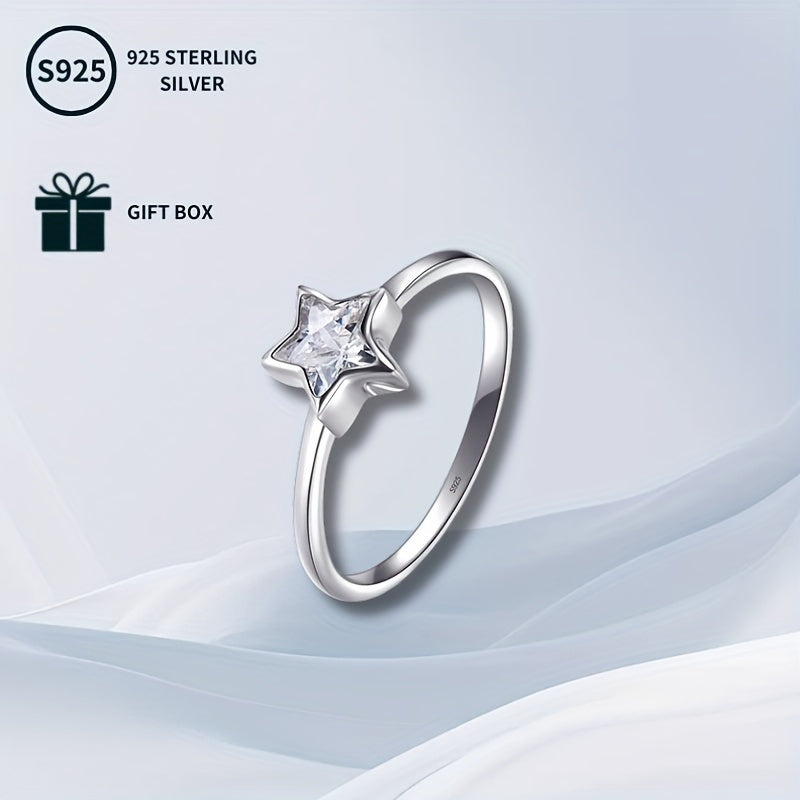 This single star ring is crafted from 925 sterling silver with synthetic cubic zirconia for a sparkling touch. It features a silvery plated band in a casual style.