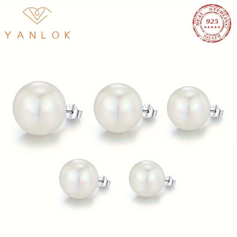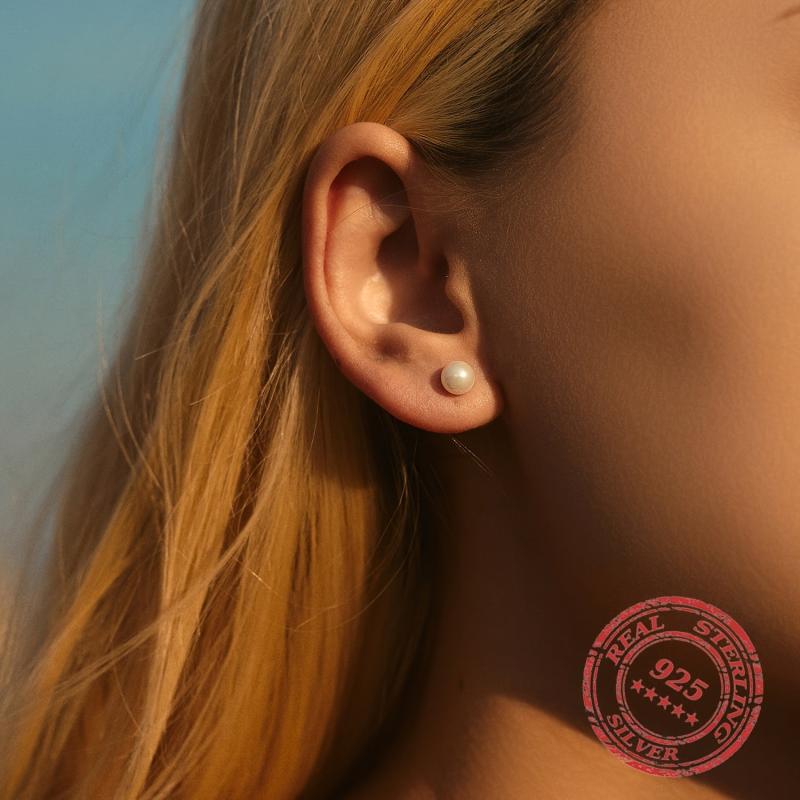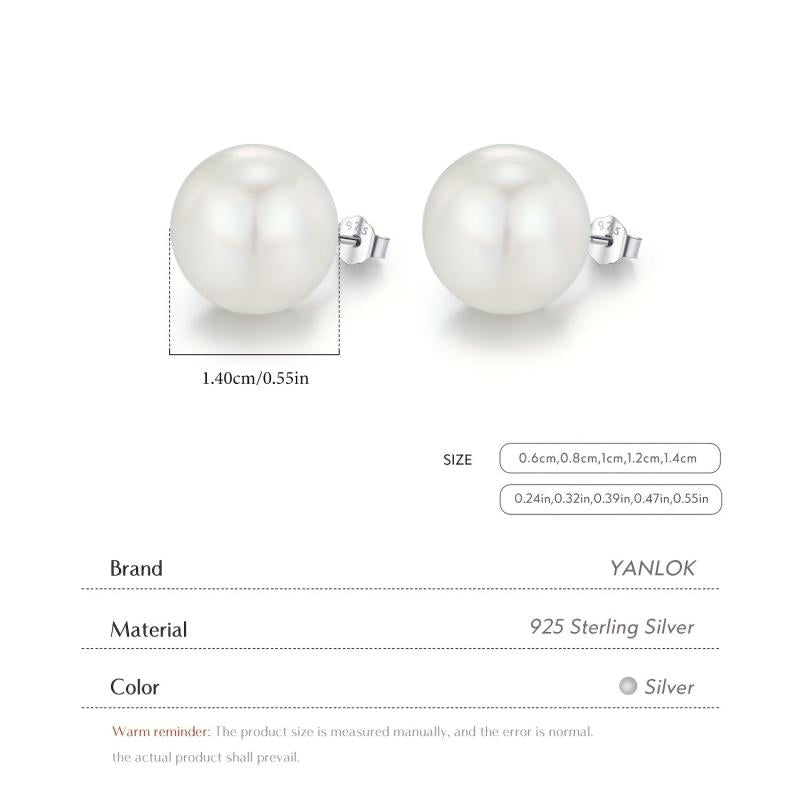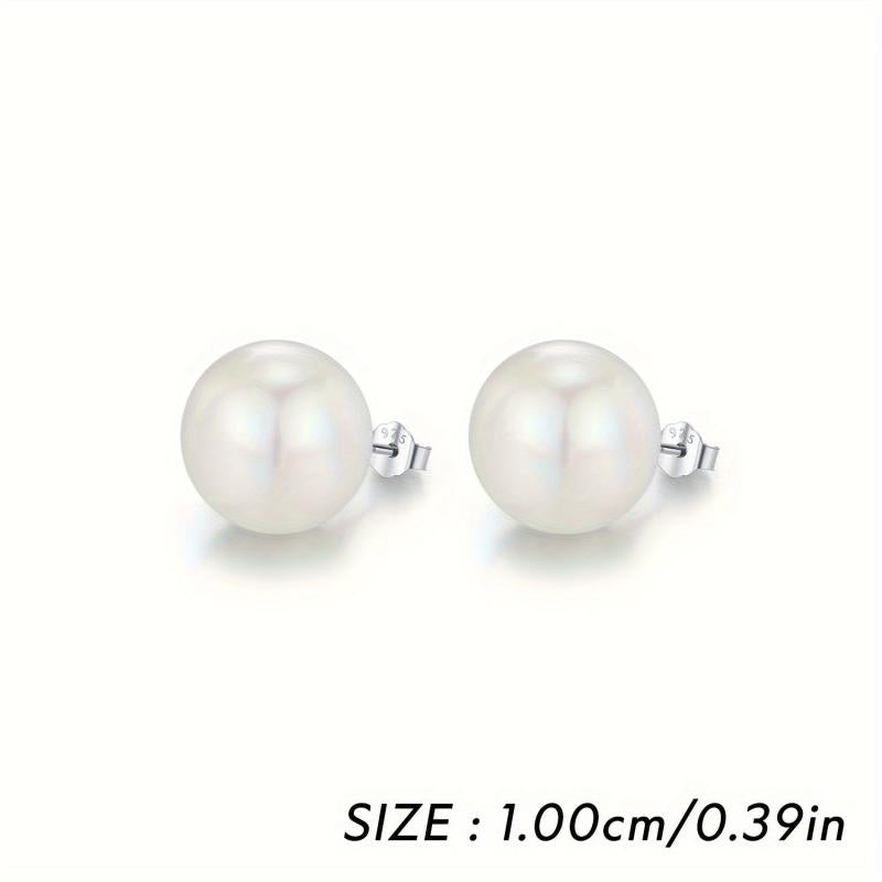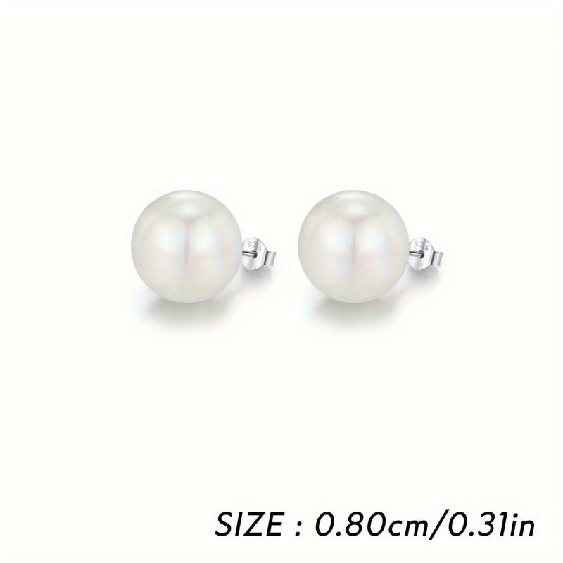 These classic stud earrings are made of 925 sterling silver with artificial pearl. They are rhodium plated for a shiny look. Available in 5 different sizes, these earrings make a perfect birthday gift for women.