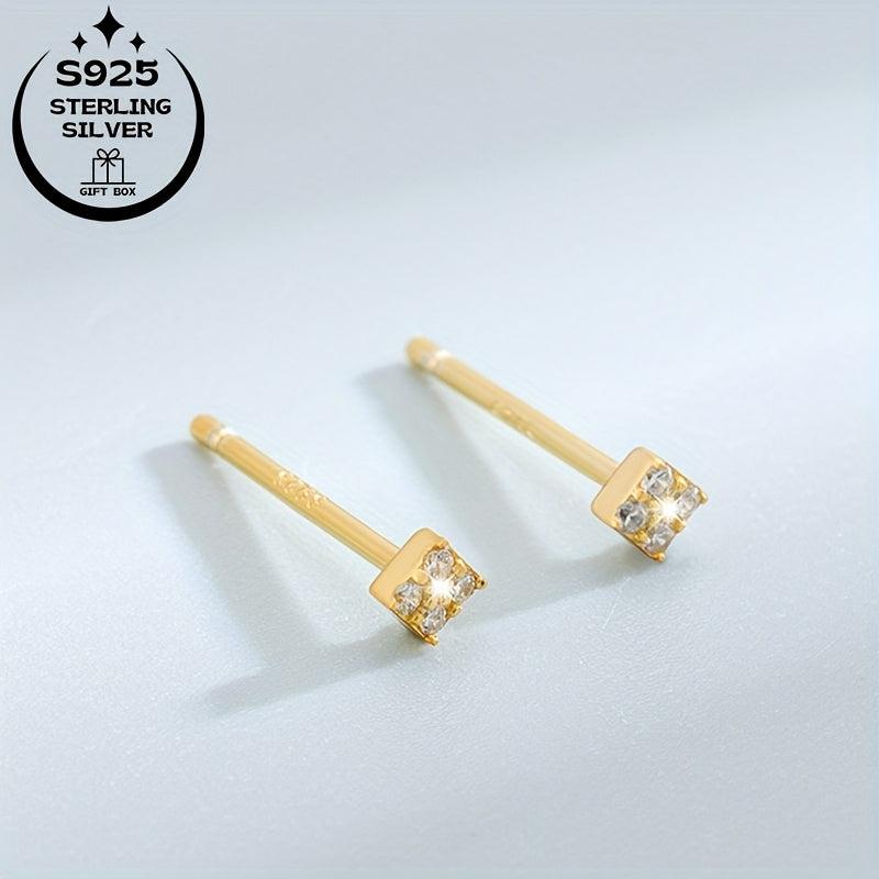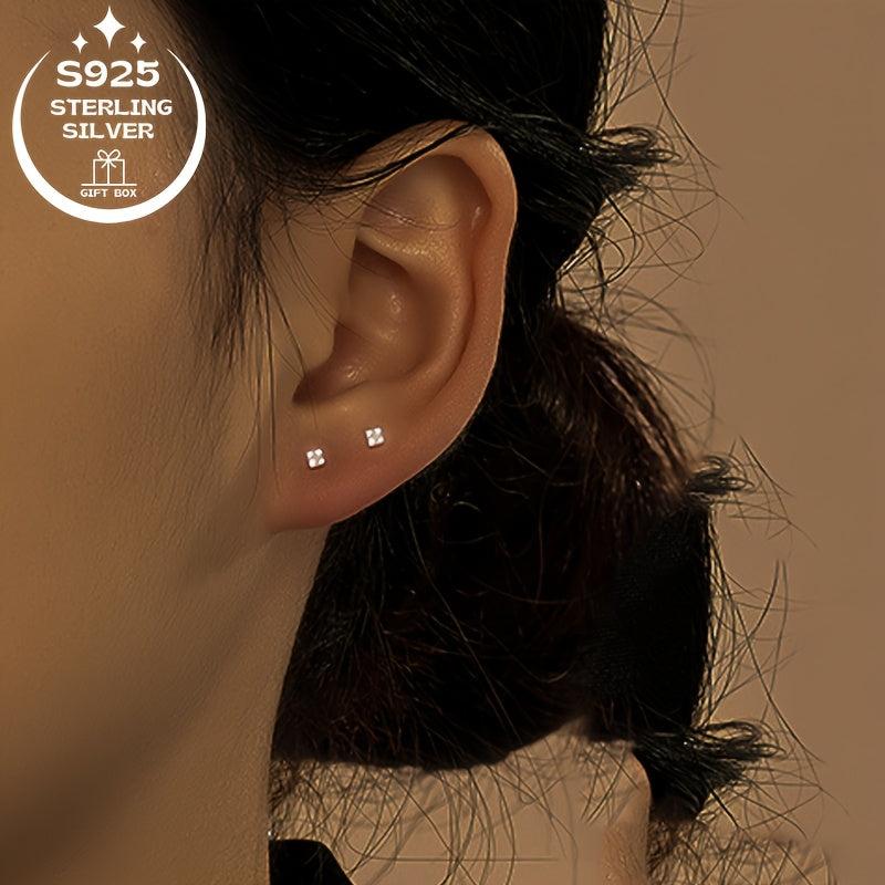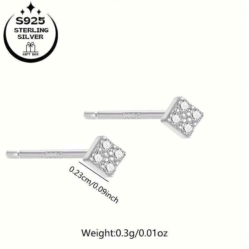 These classic style stud earrings are made of 925 sterling silver with synthetic zirconia, perfect for daily wear or gift giving. They come in a heart-shaped gift box.