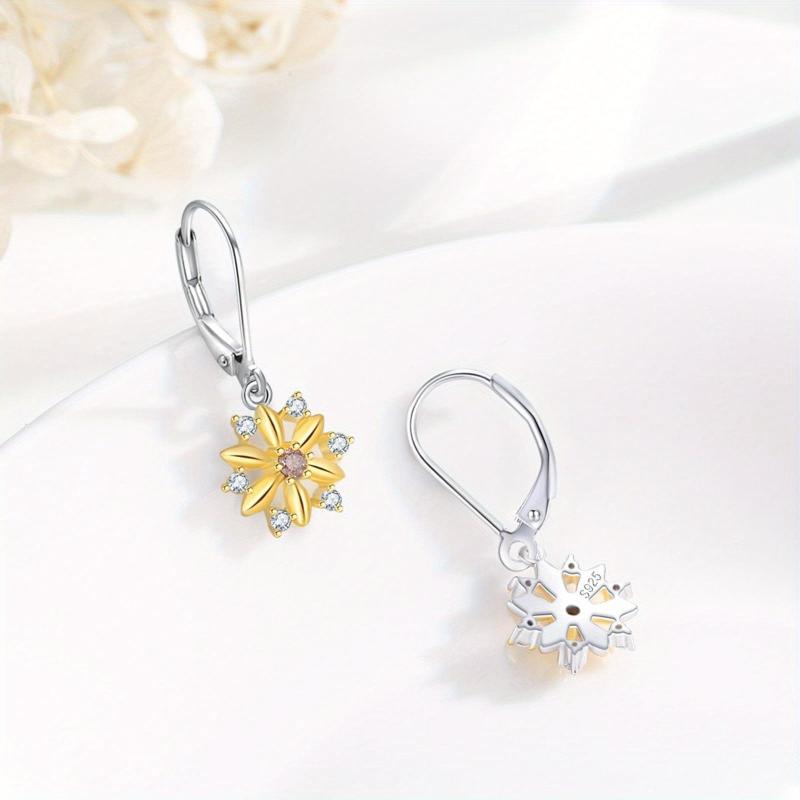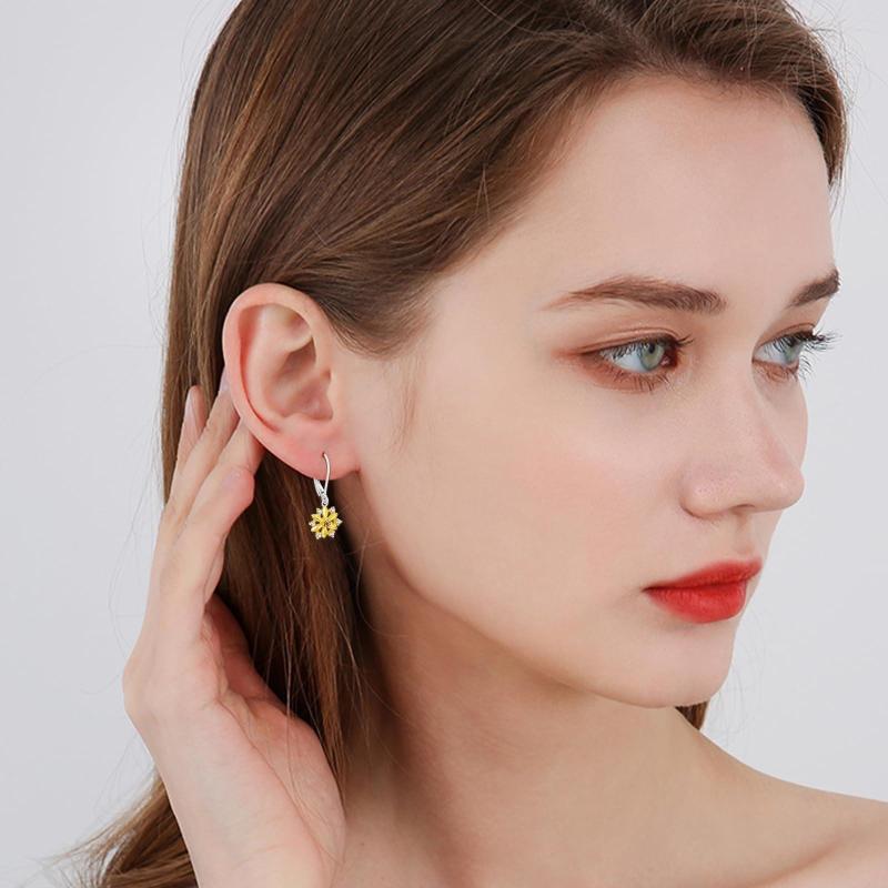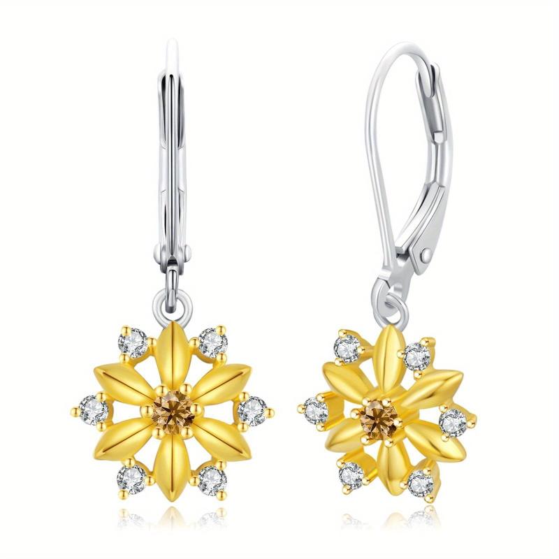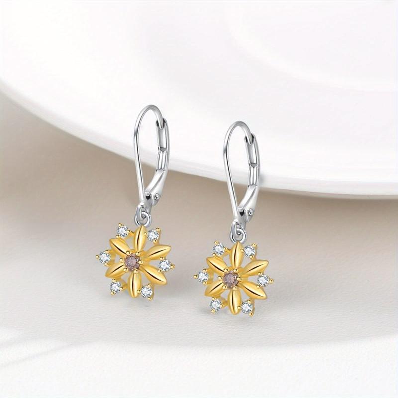 Add a touch of sunshine to your outfit with these beautiful sunflower leverback earrings. Made from high quality 925 sterling silver, these earrings feature a cubic daisy drop dangle design that will add a touch of elegance to any look.
