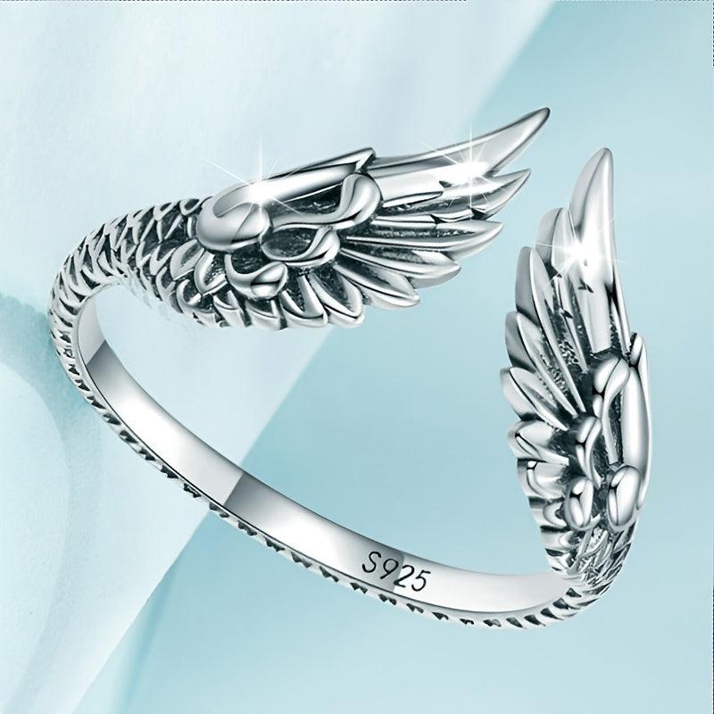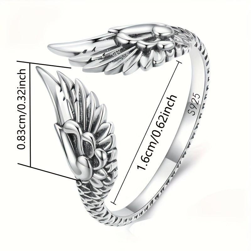 This unique 925 sterling silver vintage guardian feather open ring is a stylish hip hop jewelry piece. It weighs 2.5g and makes an ideal holiday gift.