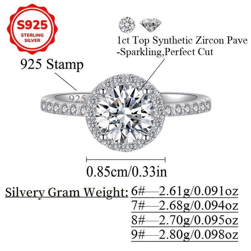 This exquisite women's wedding ring is made of 925 sterling silver and adorned with a sparkling synthetic zirconia. It weighs between 2.61g and 2.80g per piece, making it a timeless and elegant choice for your special day.