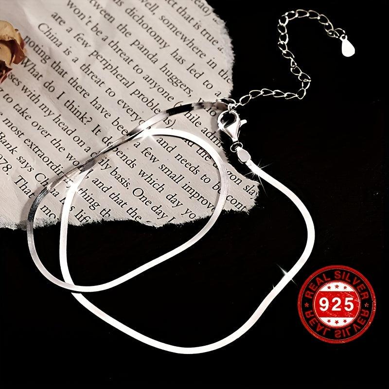Elevate your style with this fashionable flat snake bone chain necklace. Crafted from 925 sterling silver, this minimalist blade chain is perfect for daily wear. A must-have for any fashion-forward woman.