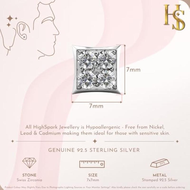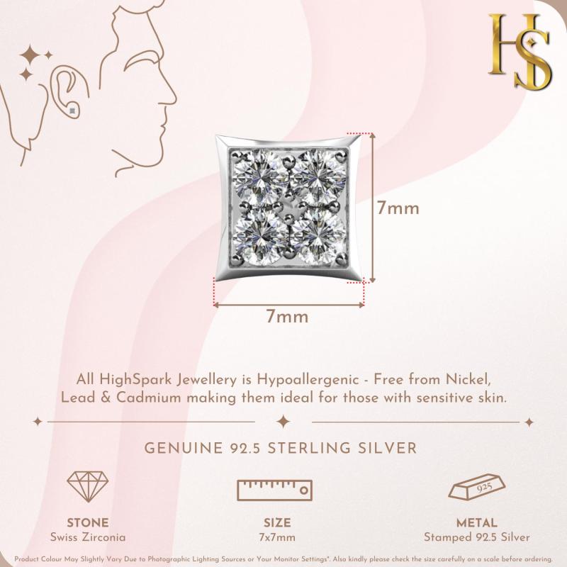 Elegant 925 sterling silver square solitaire earring featuring diamond-like brilliance zirconia. Perfect for a stylish and lovely look.