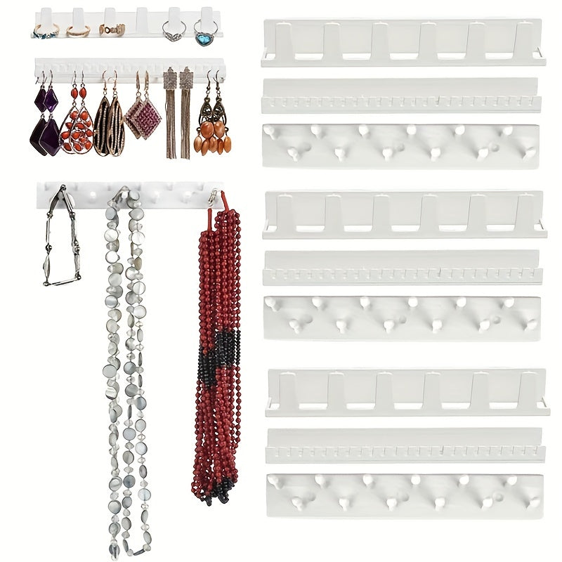 Keep your jewelry organized and easily accessible with this 9-piece set of wall hanging storage hooks. Perfect for earrings, rings, necklaces, and more.