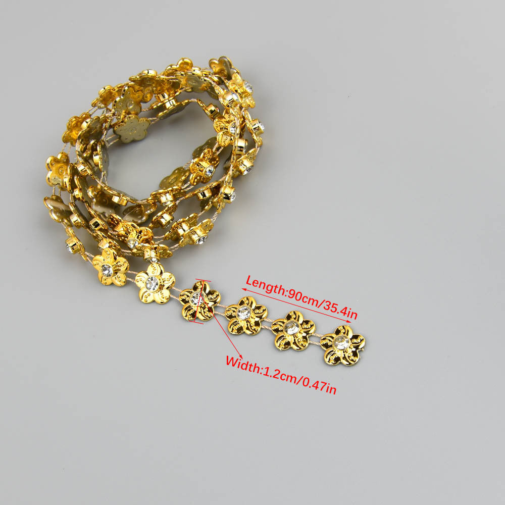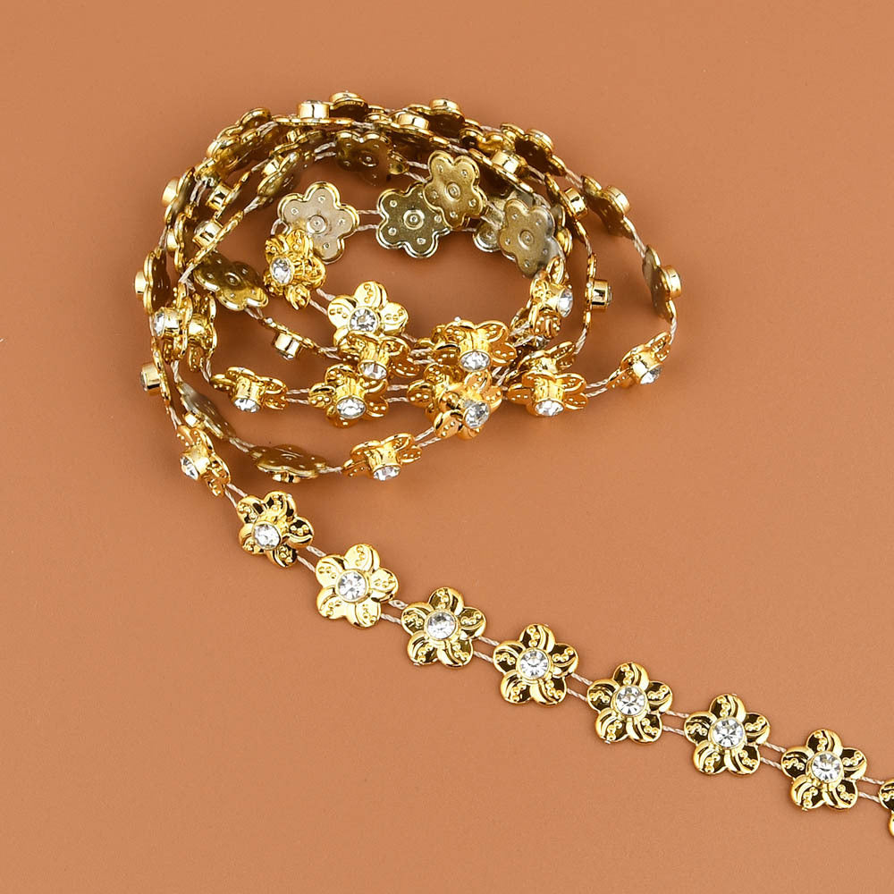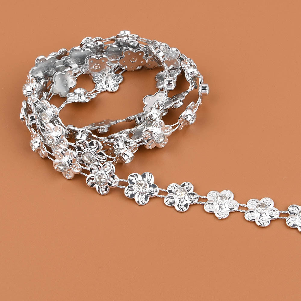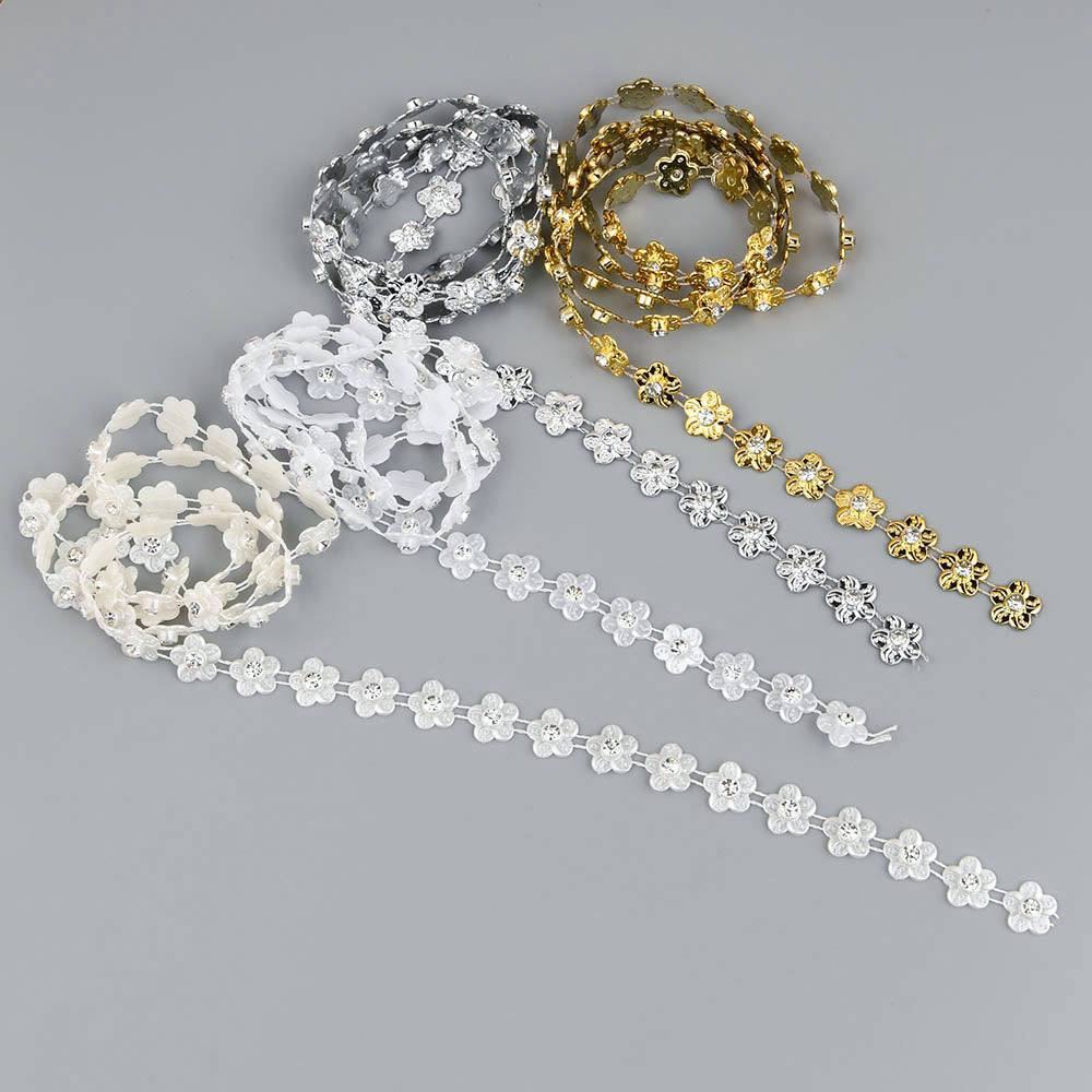 This ABS flat back faux pearl with round rhinestone chain trim lace is perfect for sewing onto wedding clothes, cake decoration, home decor, and more.