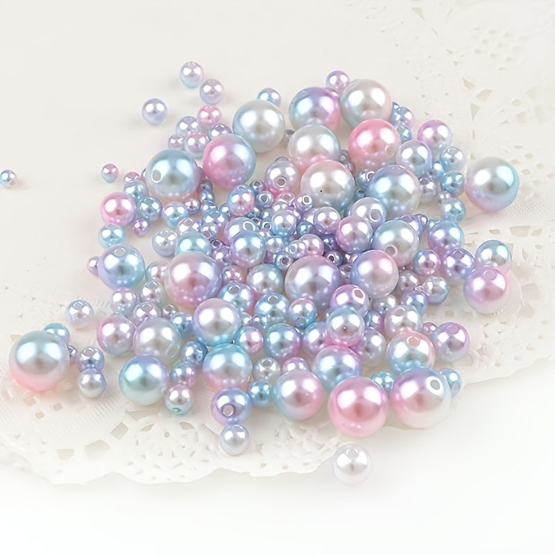 Create stunning jewelry pieces with this mixed size ABS gradient pearl beads. The set includes 4mm, 6mm, 8mm, 10mm, and 12mm beads with a unique hole design.