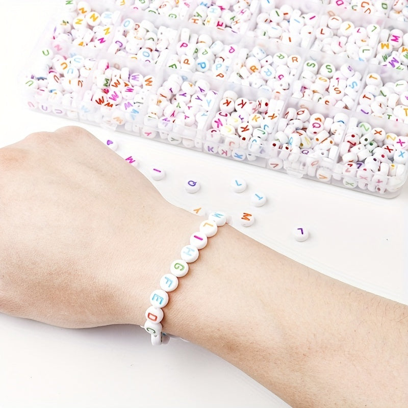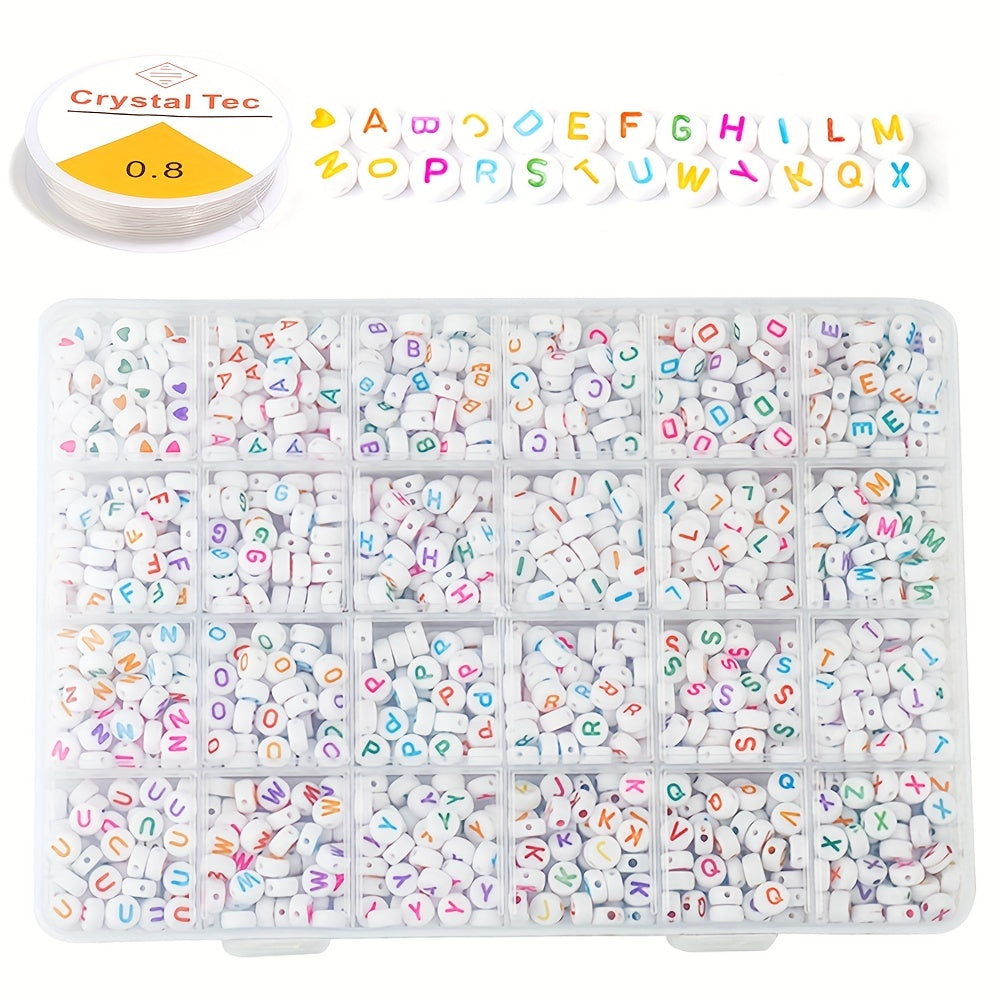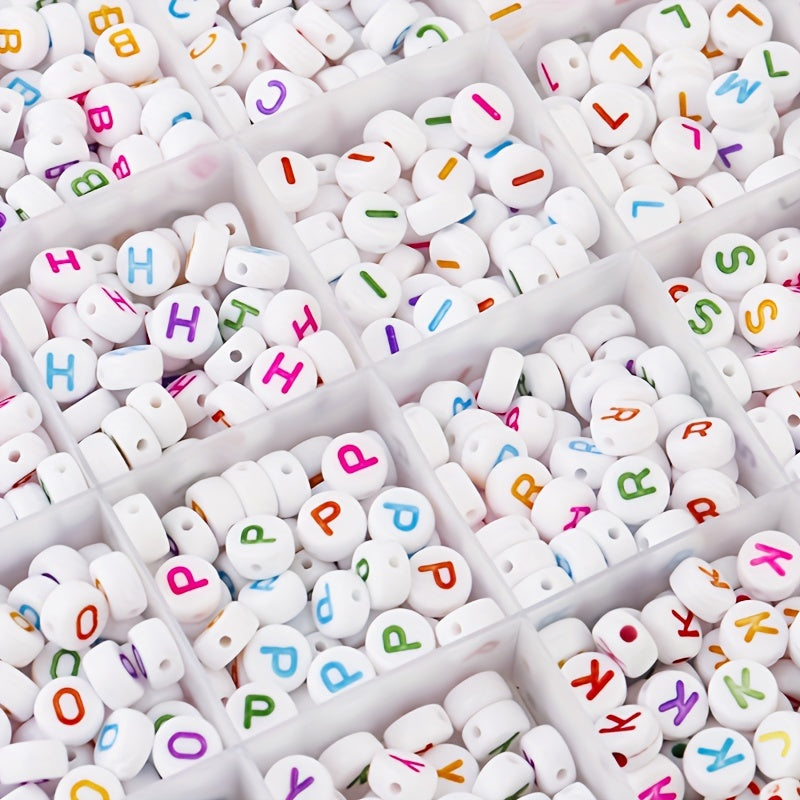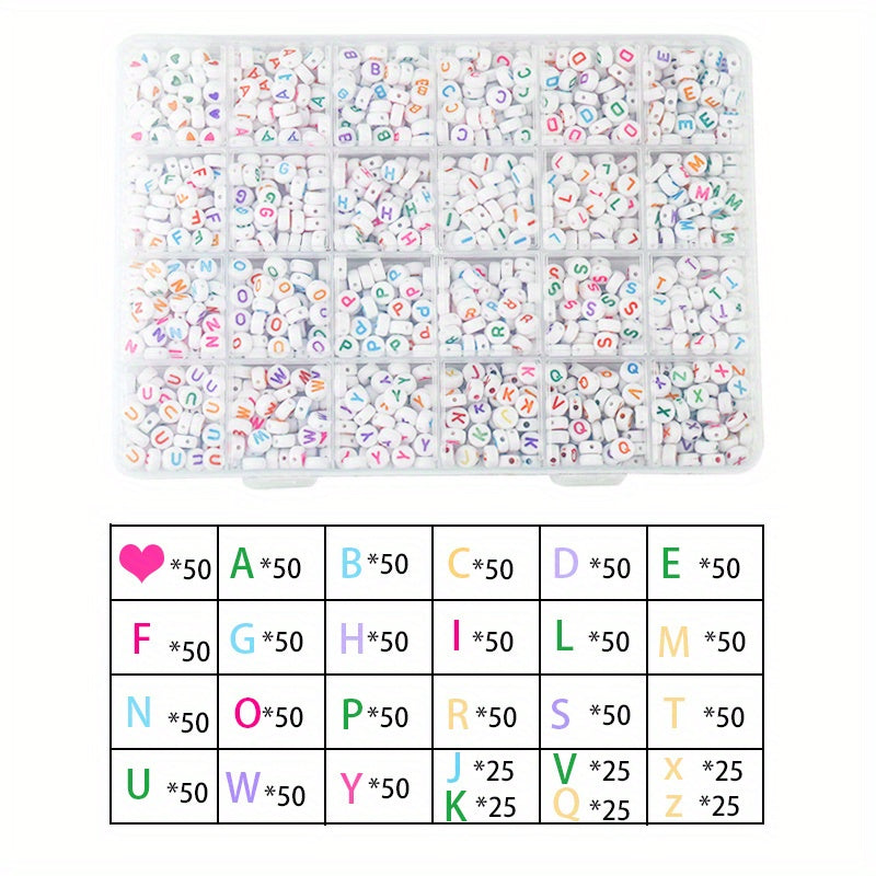 Create personalized jewelry with this 24-compartment acrylic beads set featuring colorful letters pattern. Perfect for making unique bracelets, necklaces, and more.
