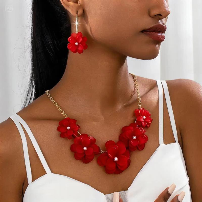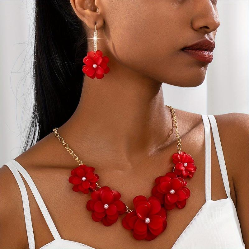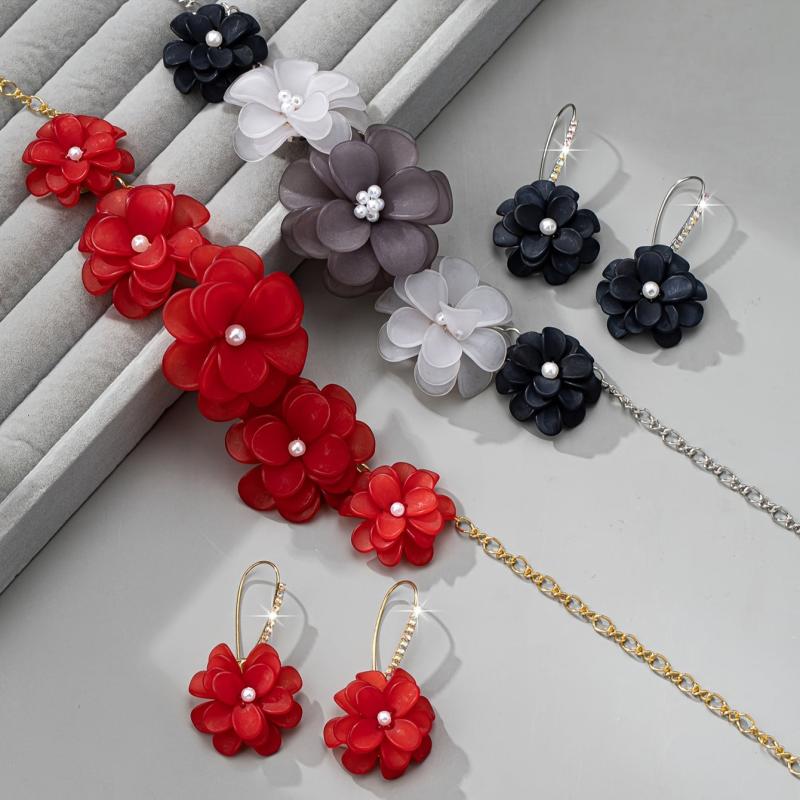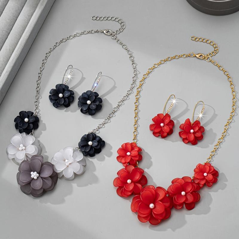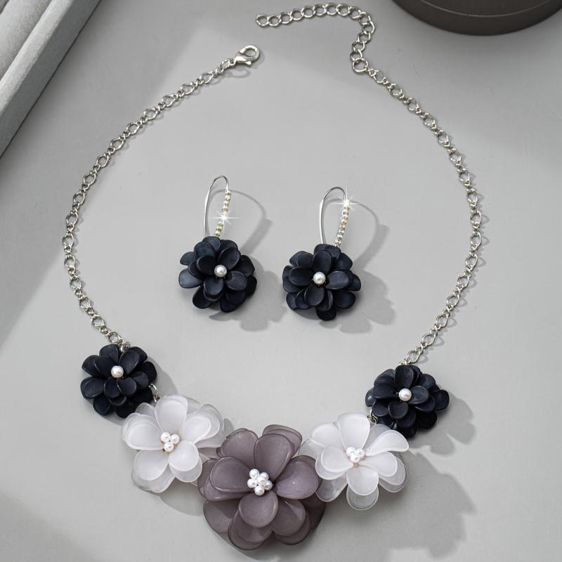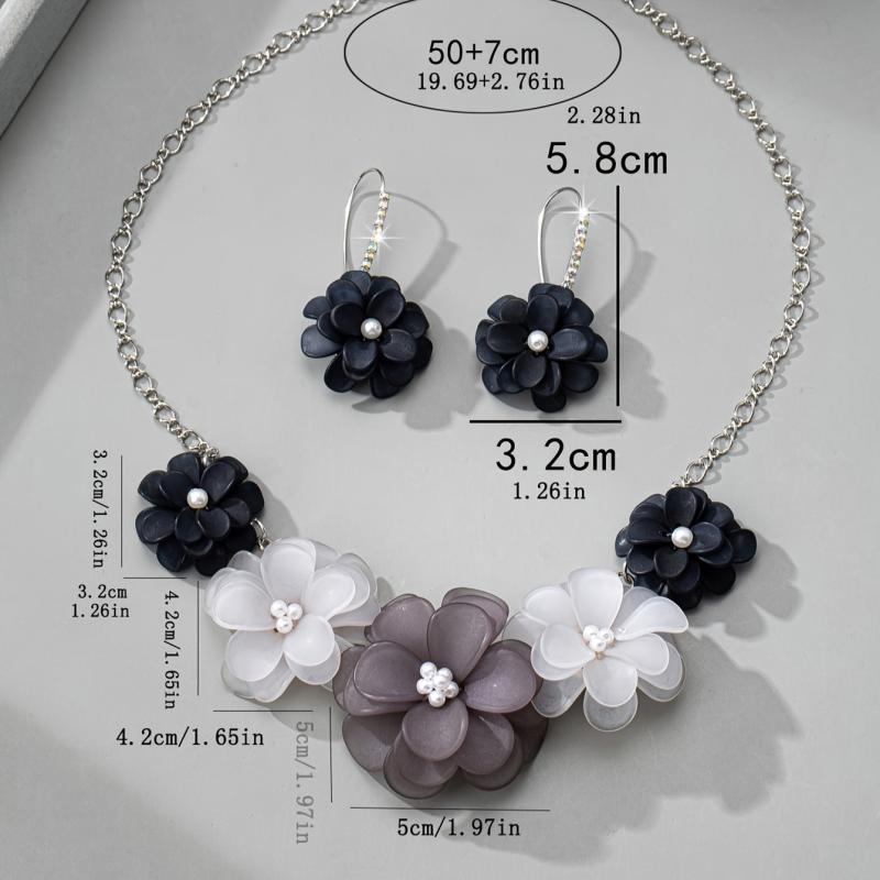 Acrylic Flower Necklace and Earring Set - Floral Jewelry for Women