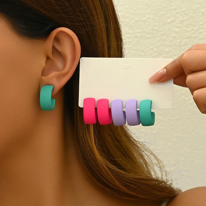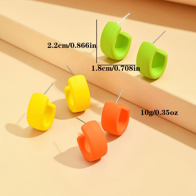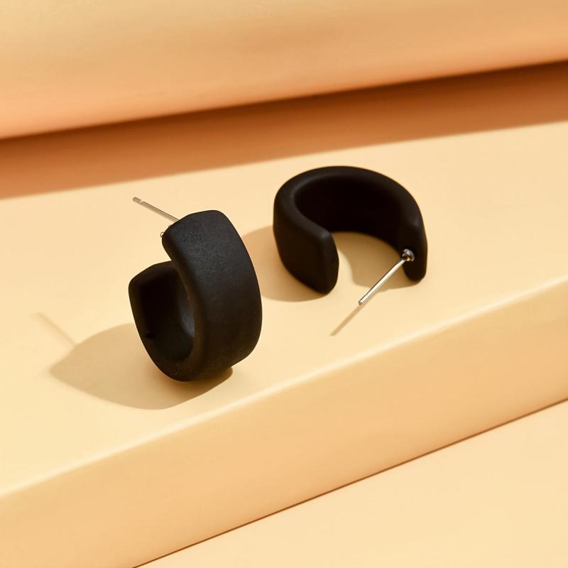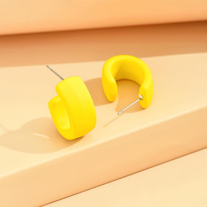 Elevate your casual look with these solid C-shaped acrylic hoop earrings. Made of stainless steel with no plating, these earrings are perfect for daily wear and casual gatherings.