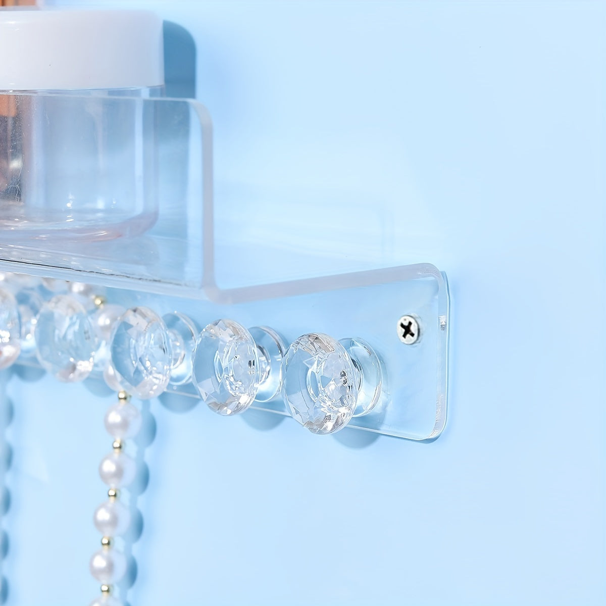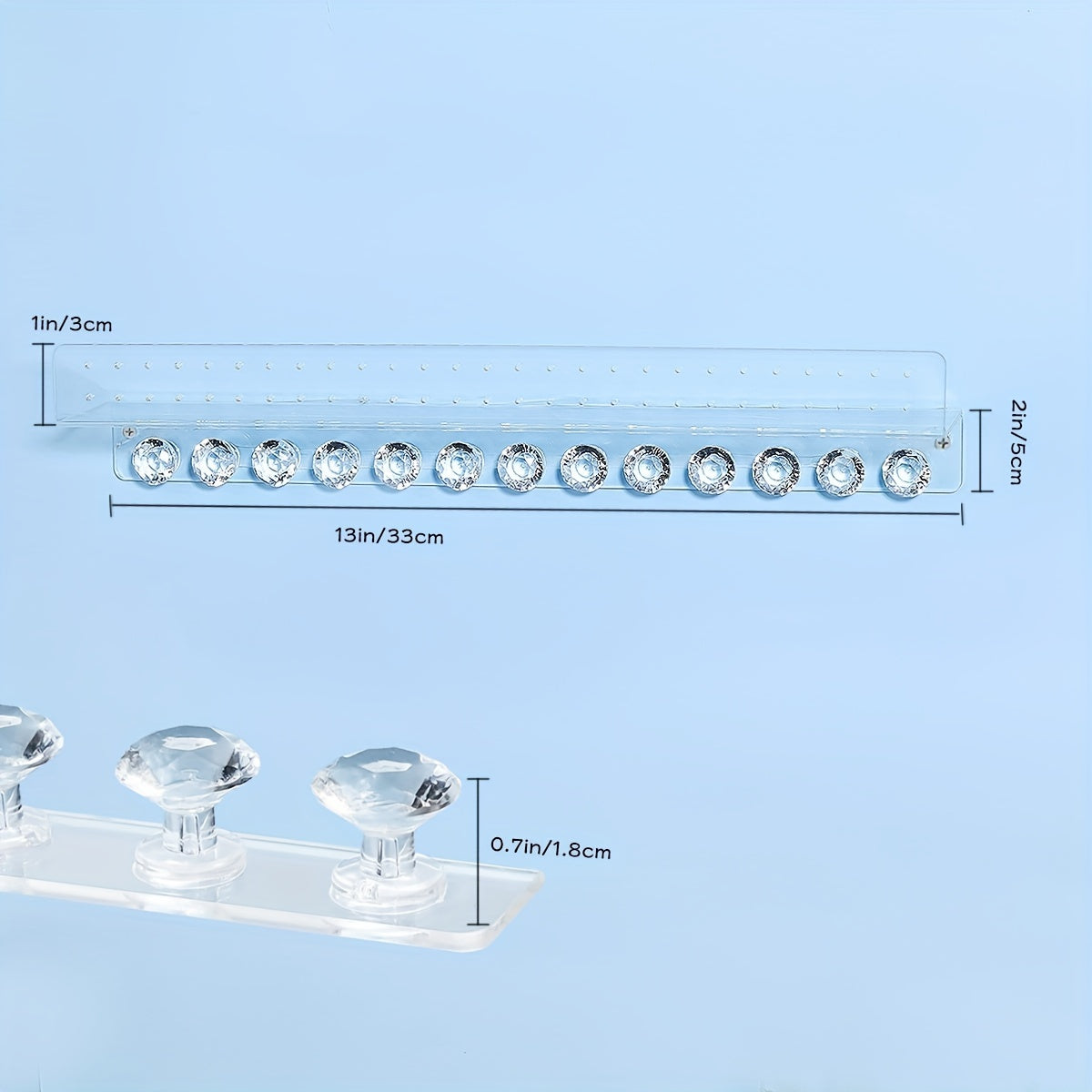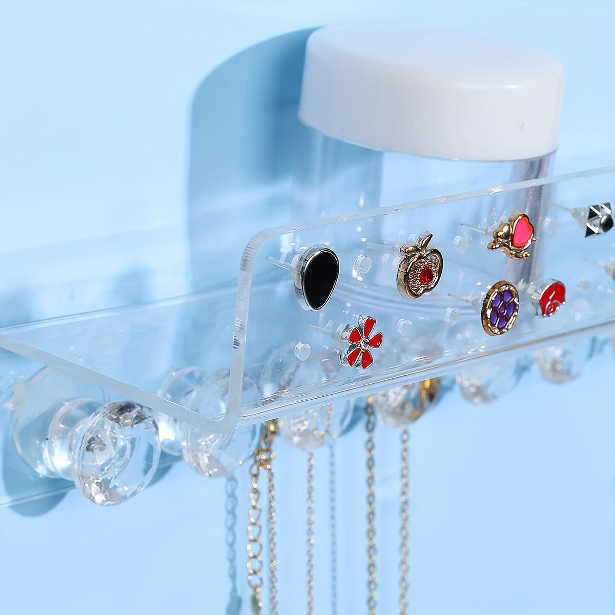 Keep your jewelry organized and displayed in style with this acrylic wall hanging jewelry organizer. It features 13 hooks for storing earrings, necklaces, and bracelets, allowing you to easily find and access your favorite pieces.