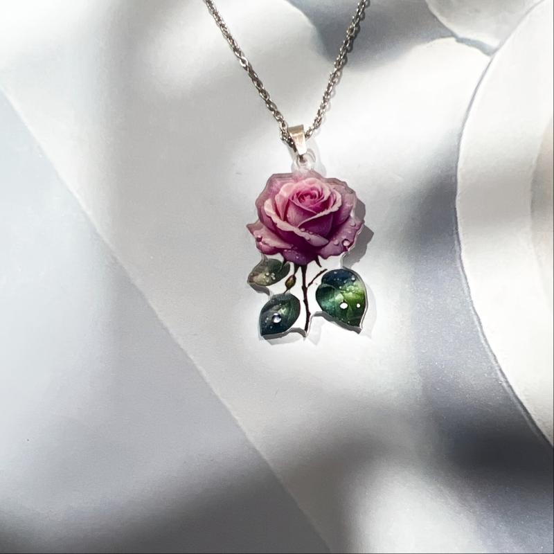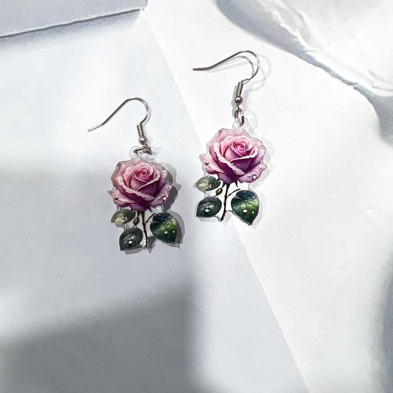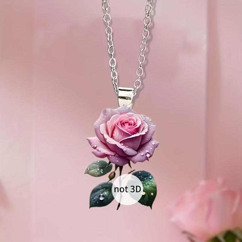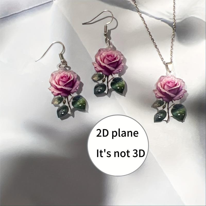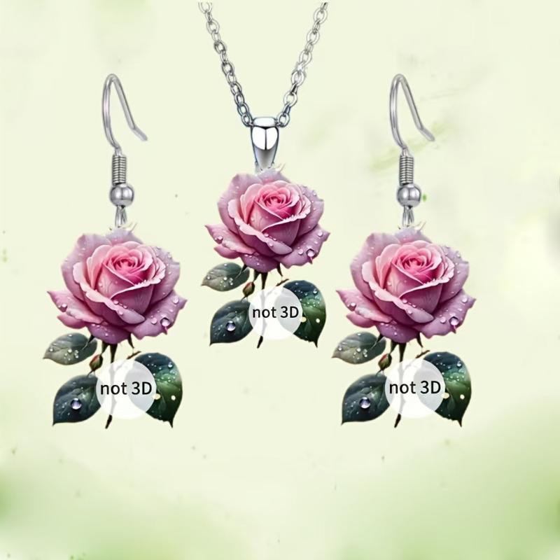 Stylish double-sided earrings and pendant set with a rose print design. Perfect for Valentine's parties, holidays, and casual outfits.