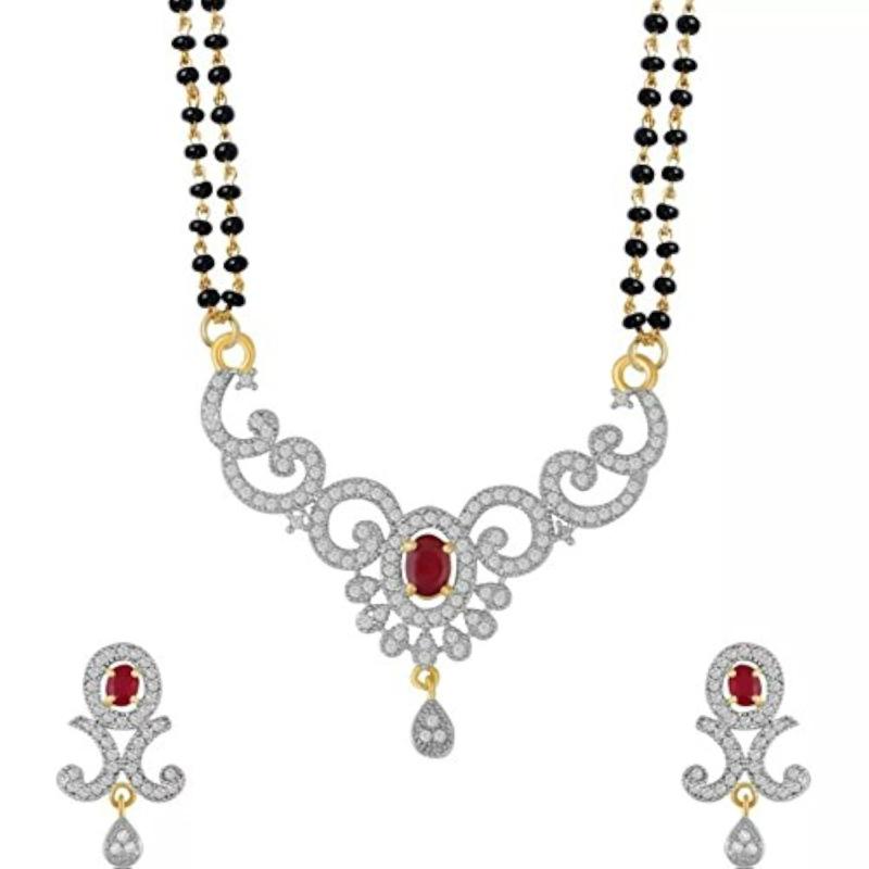 Accentuate your look with this beautiful American Diamond mangalsutra set enhanced with matching earrings.