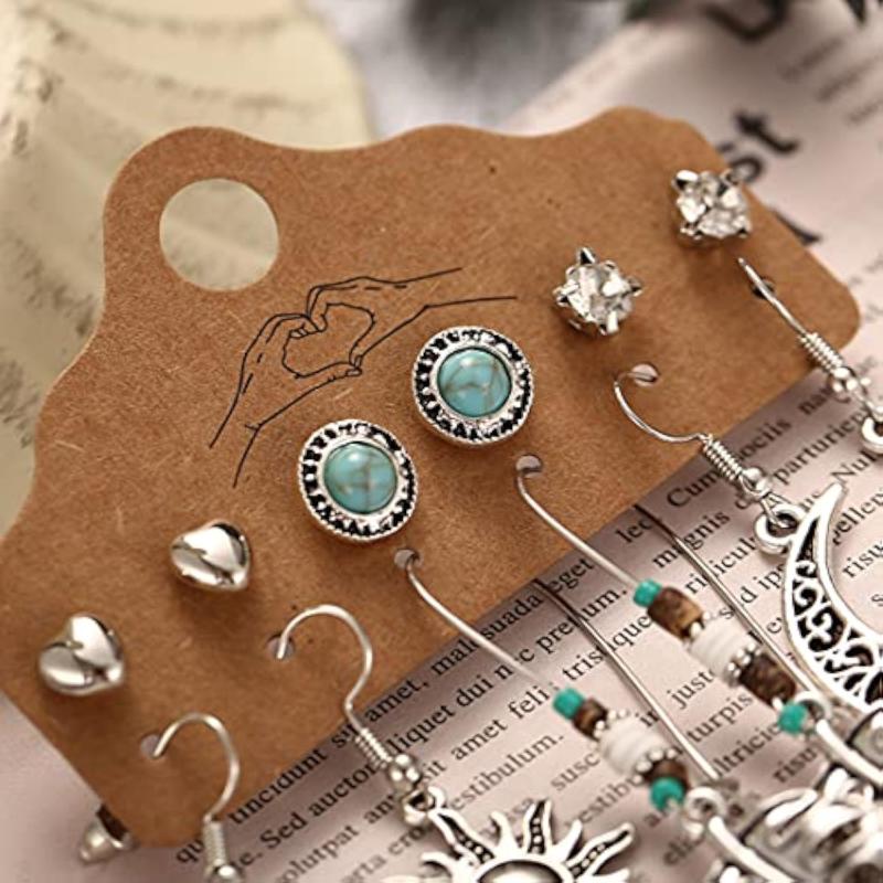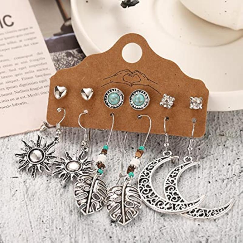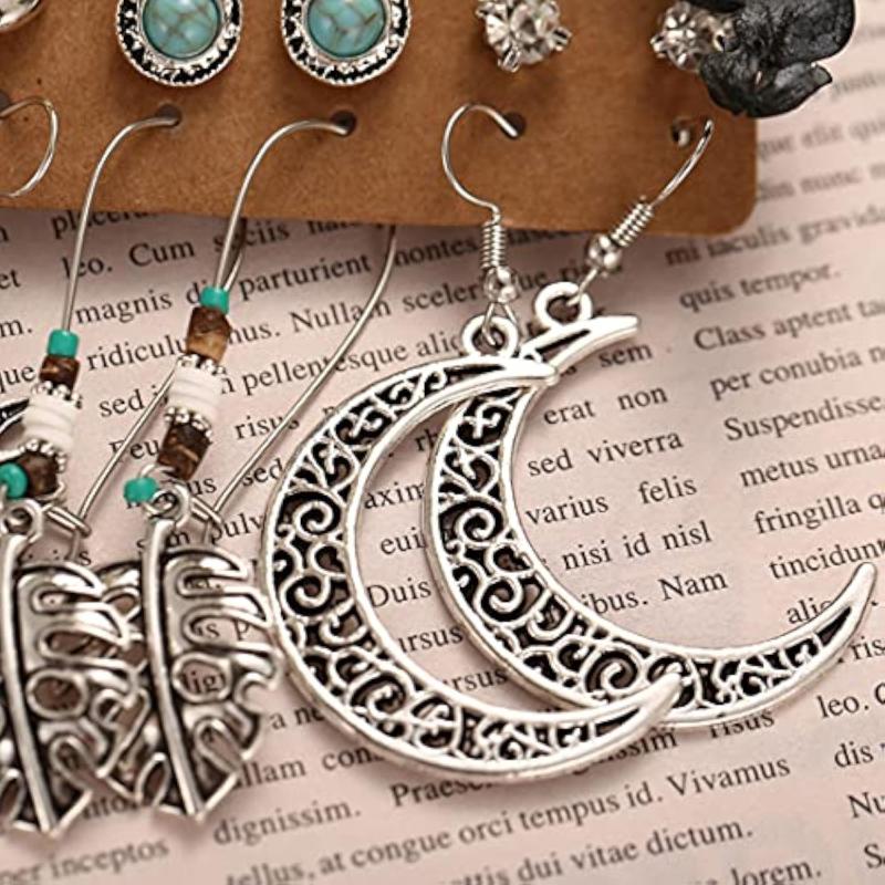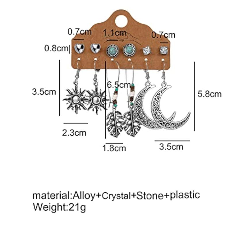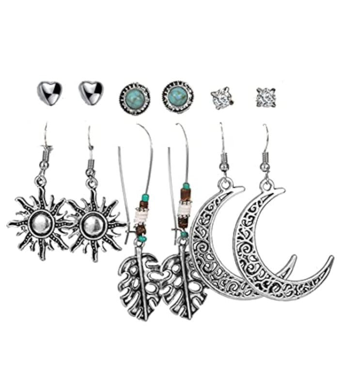 Get this stunning set of 6 pairs of German silver plated earrings featuring an oxidised finish.
