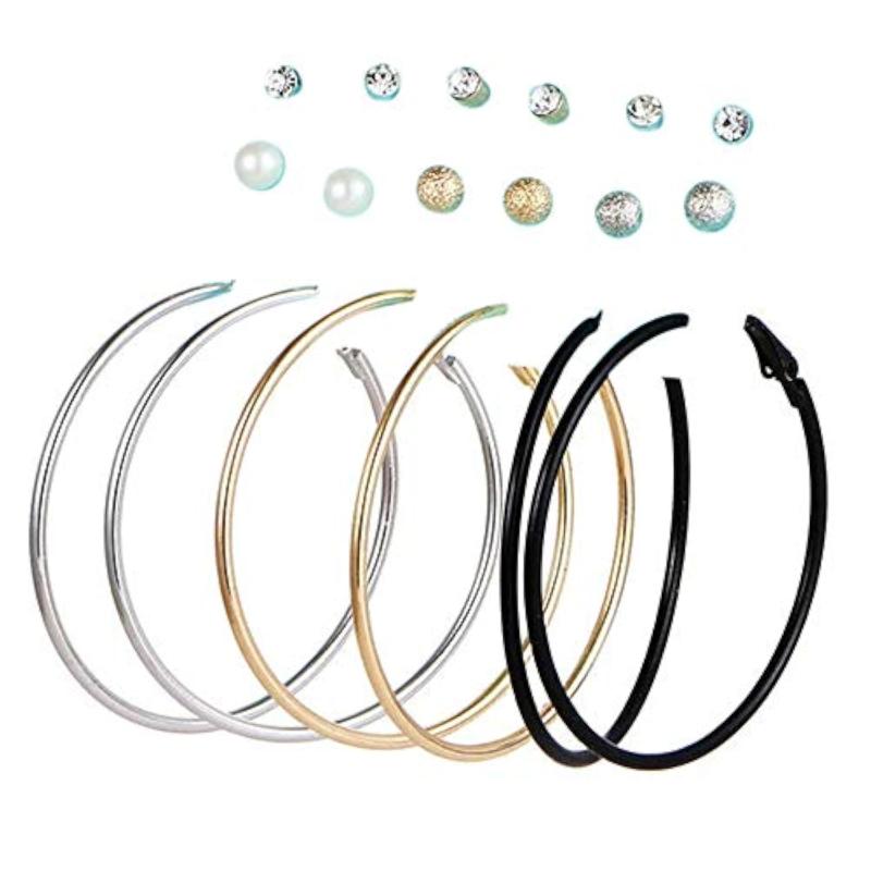 Elegant set of 9 pairs of earrings featuring mesmerizing AD and pearl embellishments. Perfect for various occasions.
