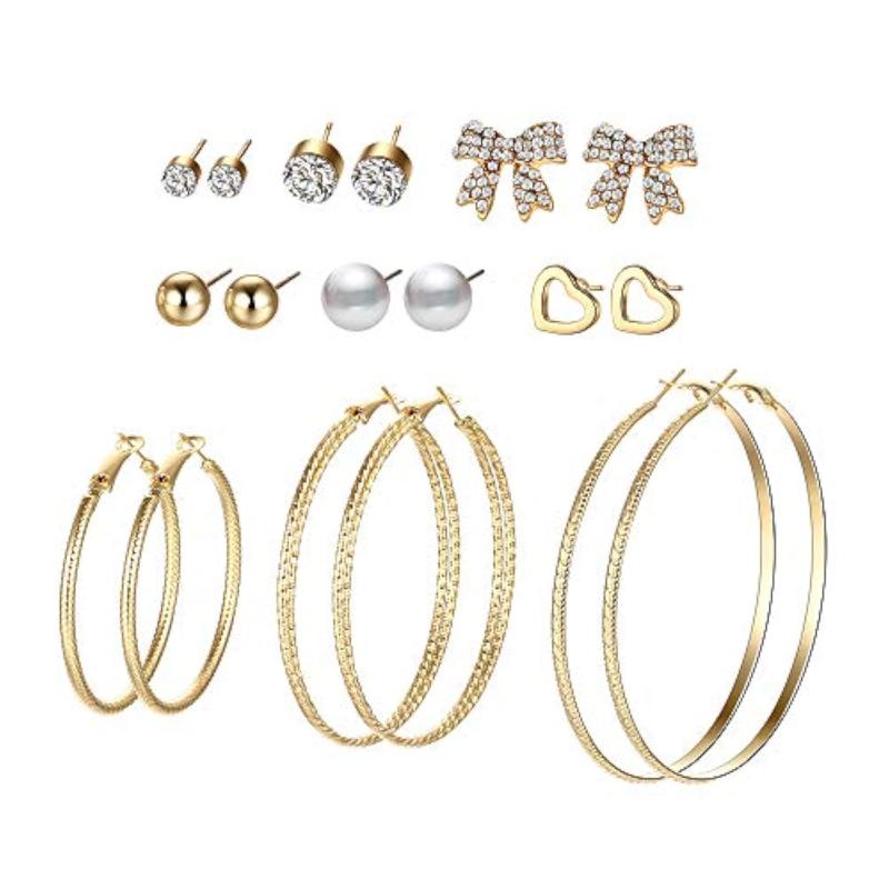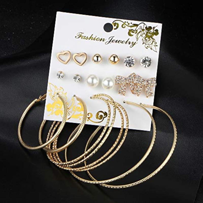 Get the Ravishing 6 pairs of stud earrings and 3 pairs of hoop earrings in one set. Perfect for adding a touch of glam to any outfit.