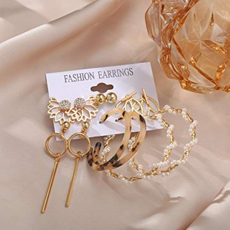 Enhance your look with this stunning set of 9 pairs of AD plated earrings. Perfect for everyday wear or special occasions.