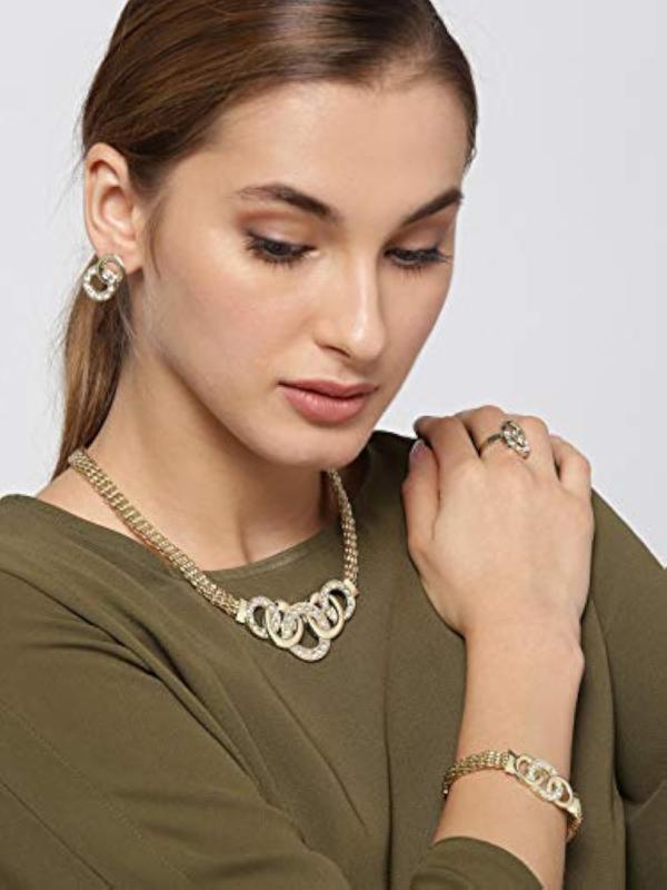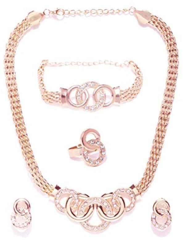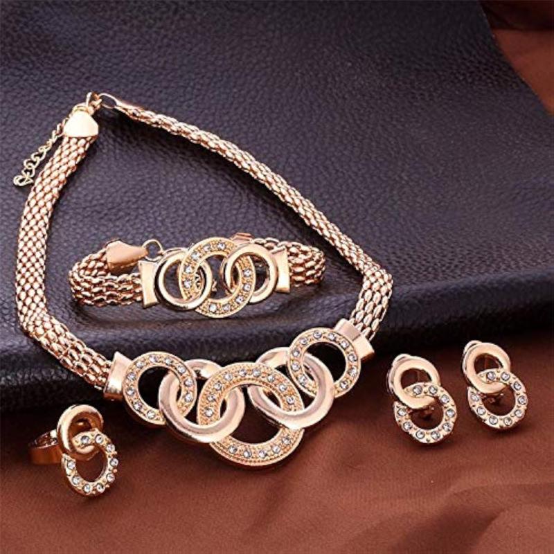 Elevate your style with this stunning vintage AD jewelry set featuring a necklace, earrings, bracelet, and ring.