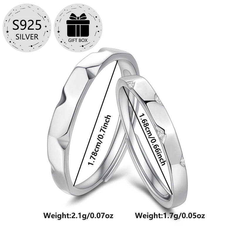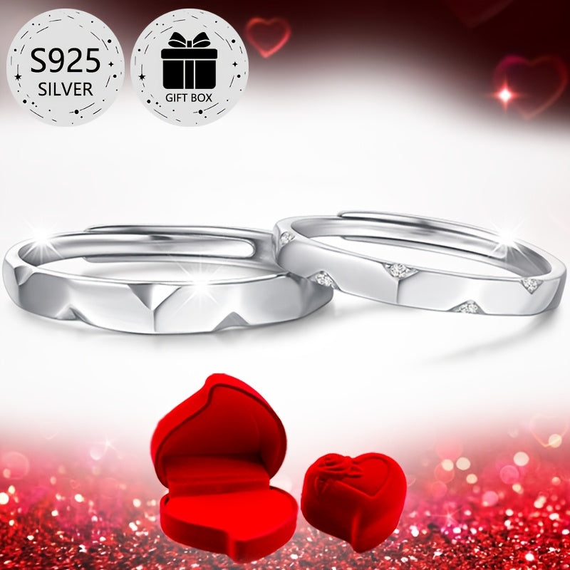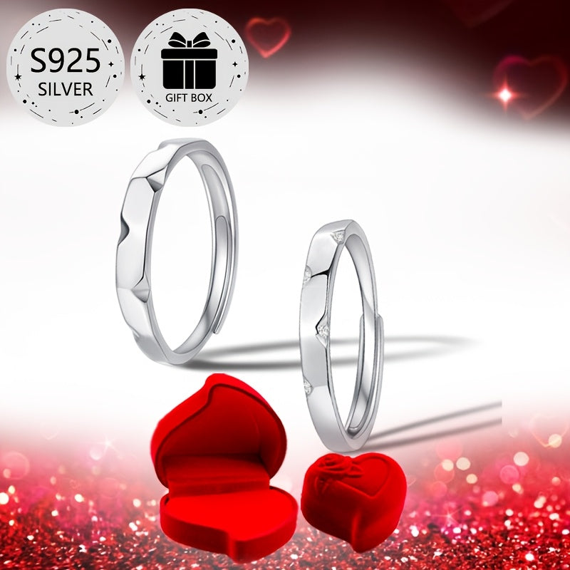 Minimalist and romantic, these adjustable 925 sterling silver rings are perfect for proposals, weddings, parties, or daily wear. Featuring a heart design, they are a symbol of love and commitment.