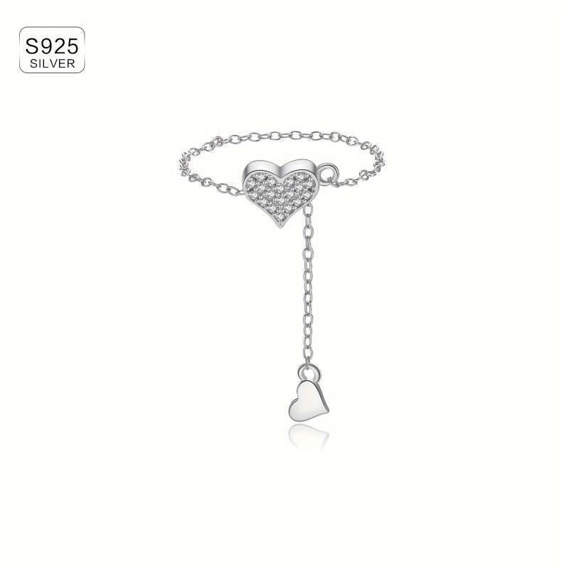 This beautiful ring features a heart design with synthetic cubic zirconia, crafted from 925 silver. No power needed, perfect for daily wear and gift giving in all seasons.