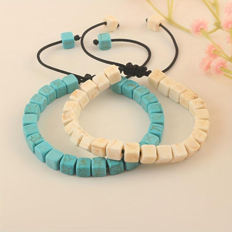 This braided bracelet features square turquoise beads on a stylish cord, making it a perfect friendship gift for men.